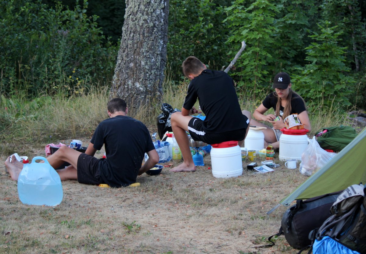 Mit einem Stück Schokolade in der Hand und einem Lied auf dem Lippen waren wir schneller als gedacht am Ziel und schlugen unsere Zelte zum letzten Mal auf. Dem Anlass entsprechend wurde das perfekte Outdoordinner auf das Campinggeschirr getafelt. Es gab Vielerlei-Eintopf. Darin war alles enthalten, was der Packsack noch her gegeben hat. Außer Fleisch. Im Laufe des nächsten Tages wurden wir samt der Kanus und des Equipments von einem Mitarbeiters des Kanotcenters abgeholt, der Transfer dauerte lediglich eine Stunde. Auch wenn wir vielleicht nicht die schnellsten waren oder besondere Leistungen erbracht haben, war dieser Urlaub doch einzigartig. Nicht nur die Organisation war reibungslos, auch das Drumrum gab keinen Grund zur Beschwerde. Aufgrund des Feuerverbotes gab es zwar an keinem Abend die begehrte Lagerfeuerromantik. Trotzdem haben wir jeden Moment genossen. Wasserwandern bereitet Freude, bringt einen aber auch an seine körperlichen Grenzen. Wir haben es geschafft! Wir haben Scharen von Mücken und Bremsen getrotzt, wir haben geschwitzt, wir haben den Klappspaten besiegt und wir hatten Respekt vor einigen Stromschnellen gehabt. Wir haben aber auch viel gelacht, einfach die Seele in dieser unberührten Natur baumeln lassen und wie verrückt getanzt. Danke Scandtrack und allen Beteiligten in Schweden!