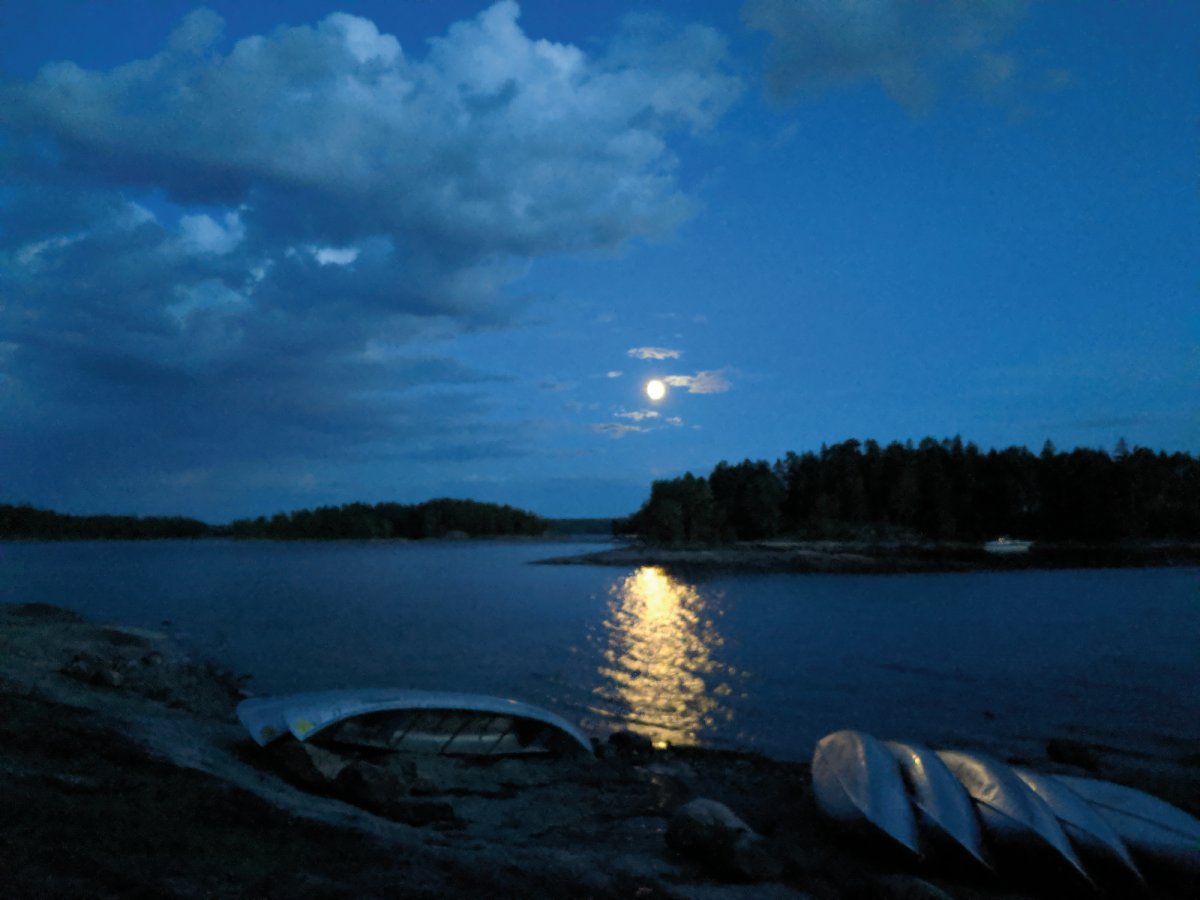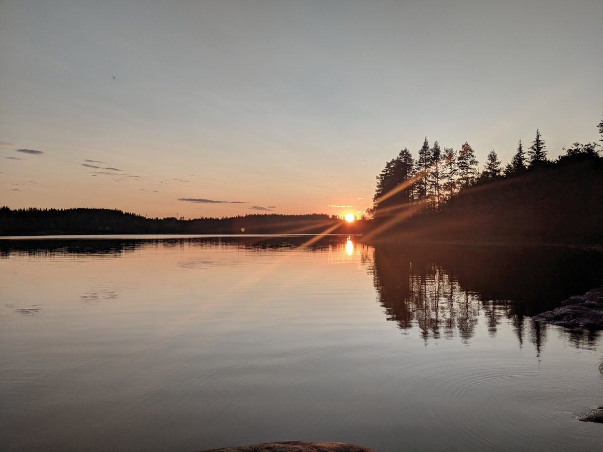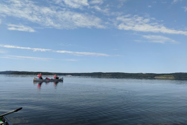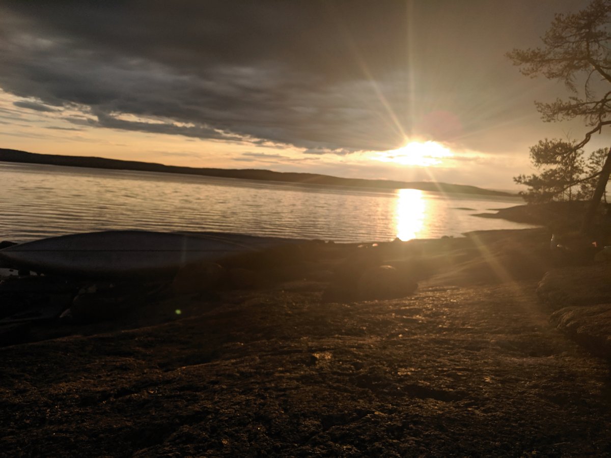 Im Basiscamp Höglund in Schweden angekommen, empfingen die Abenteurer ihre Ausrüstung, Verpflegung, Material und Kanus für die ganze Woche. Nach einer kleinen Kanueinweisung ging es direkt aufs Wasser. Nun hieß es paddeln und Ausschau nach einer Übernachtungsinsel halten. Nichts leichter als das, nach einigen Stunden auf dem Wasser erreichten alle die erste Insel. Kanus ausladen, Lebensmitteltonnen zur Feuerstelle bringen, Zelte aufbauen, Abendessen vorbereiten und Kochen auf einem Lagerfeuer, Angeln und zum ersten Mal im See Foxen schwimmen gehen stand auf der To-Do-Liste.
