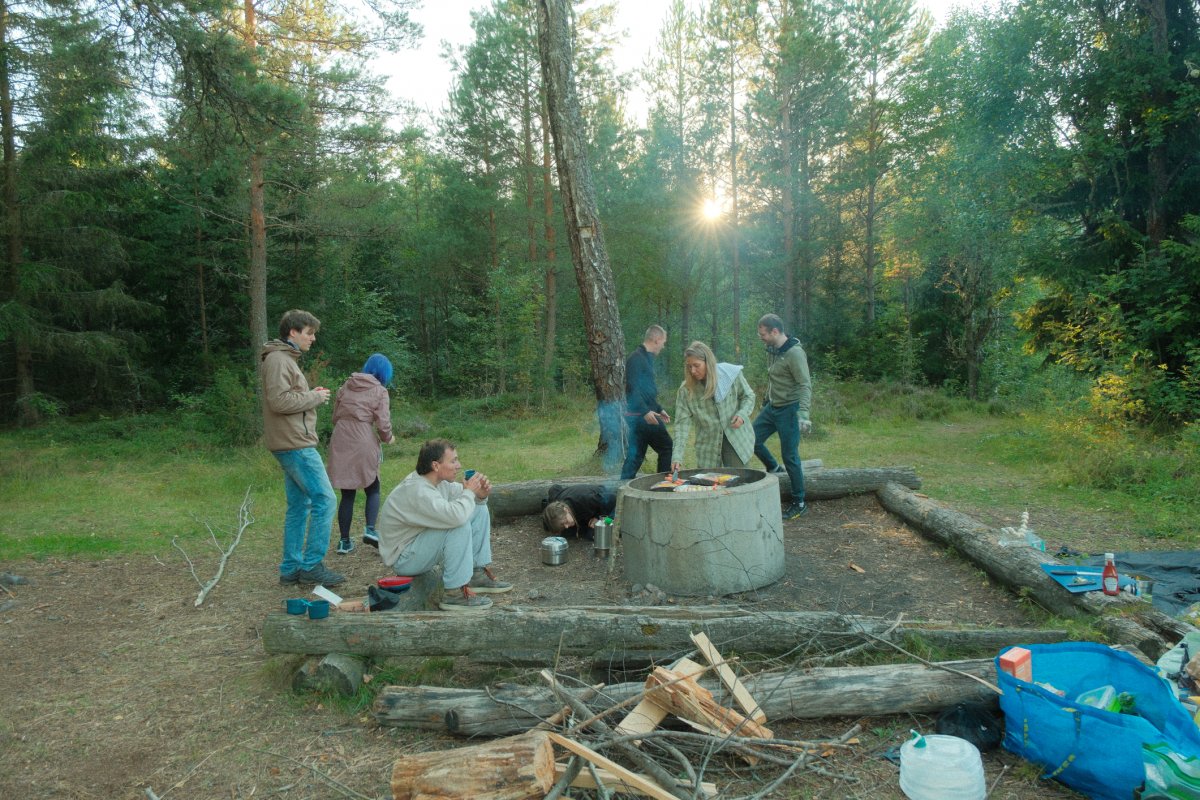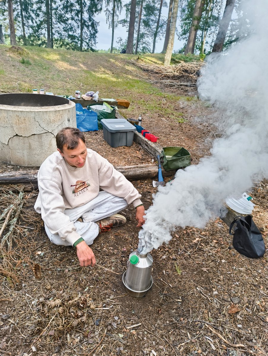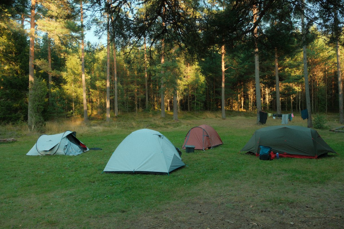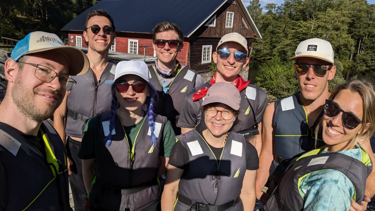 Da bei acht Leuten eine Menge an Gepäck zusammenkommt, sind drei von uns eine Woche vor unserem Tourstart mit dem Auto von Wien aus vorgefahren und haben den Großteil an Gepäck mitgenommen. Der Rest von uns flog nach. Schon bei der Zugfahrt nach Sandhem sahen wir unzählige schöne Flüsse und Seen. Spätestens da wussten wir, dass wir eine richtig schöne Zeit haben werden. Im Outdoorcamp Kyrkekvarn Cottages bekamen wir einer sehr ausführlichen Einführung von einer Mitarbeiterin. Sie markierte uns Abholstellen und Stellen, an denen besonders viel Acht gegeben werden muss und gab uns nützliche Tipps und Empfehlungen mit auf den Weg. Danach verstauten wir unsere ganze Ausrüstung in den unzähligen Kisten, Drybags und Rucksäcken, kauften alle Lebensmittel ein, die wir für die fünf Tage benötigten, und bereiteten die Kanus vor. Mit prallgefüllten Booten waren wir dann endlich bereit zu starten. Wir tasteten uns zuerst an die südliche und einfachere Seite des Tidans ran, um uns an die Kanus zu gewöhnen. Da wir spät gestartet hatten und wir am nächsten Tag die Flussseite wechseln wollten, entschieden wir uns die erste Nacht am Campingplatz am See Stråken zu verbringen. Das sollte der einzige Campingplatz werden, den wir mit anderen teilten. Danach hatten wir die Campingplätze nur für uns, was einem das Gefühl gab, auch wirklich abgeschottet von der Welt zu sein.