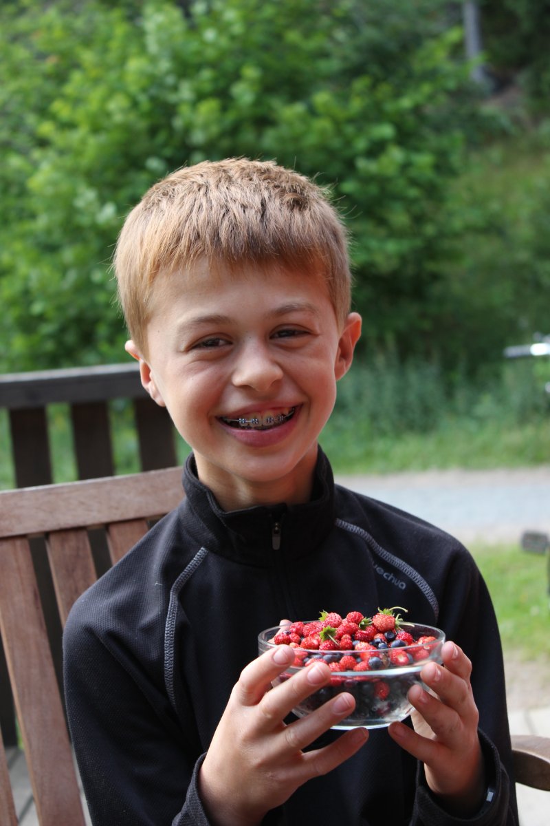 Der Wald rings um das Ferienhaus eignete sich aber auch hervorragend zum Joggen, man konnte die Reitwege und Wanderwege dazu nutzen. Natürlich konnten wir auch den vielen Blau – und Walderdbeeren nicht widerstehen. Zu viert hatte man schnell einen leckeren Nachtisch gesammelt. Hatte man trotzdem mal Lust auf ein Eis oder Stück Kuchen, gab es neben der Rezeption ein niedliches kleines Cafe.