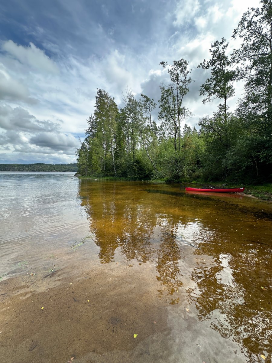 Die ersten Tage belohnten uns mit herrlichem Wetter. Die Sonne strahlte am blauen Himmel, das Wasser lag spiegelglatt da, und die Fische warteten nur auf uns. In dieser traumhaften Kulisse verging die Zeit wie im Flug: Baden, Paddeln und Angeln – was könnte man sich mehr wünschen?