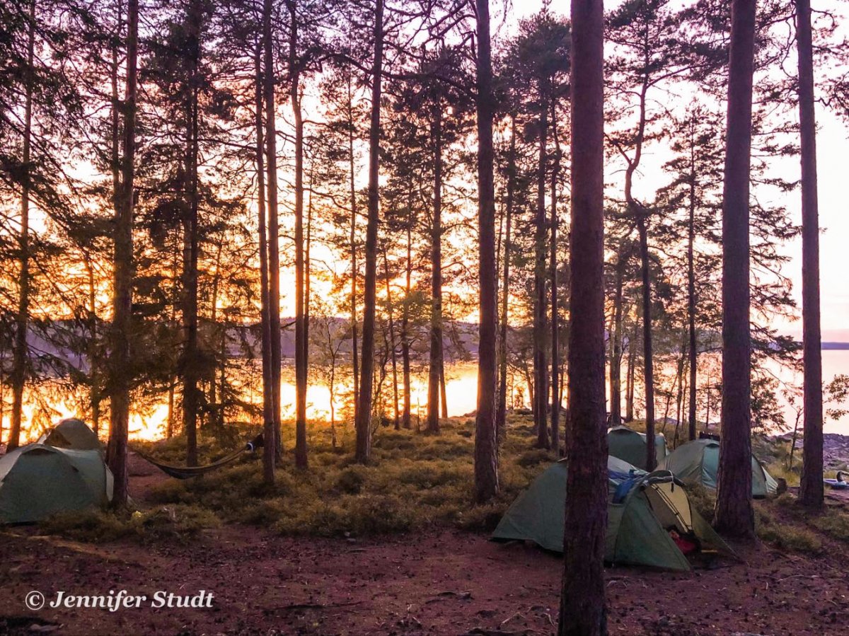 Kommen wir nun zum Erholungsteil. Ich als Stadtmädel habe erstmal 1,5 Tage gebraucht, um auf diese geballte Natur klar zu kommen. Ich glaube ich hatte sehr viel Proteine an den Tagen, weil ich die ganze Zeit mit offenem Mund Kanu gefahren bin. Es ist einfach unglaublich, dass es noch so ein fleckchen Erde gibt. Weit und breit so gut wie keine Menschen. Keiner der dich anbrüllt, ob man noch eine Kasse aufmachen könne. Keine Menschen, die sich auf offener Straße anbrüllen, weil sie mega gestresst sind. Keine negativen Wellen. Es war der Himmel auf Erden. Was am Anfang eine Überwindung war, war das Klohäusschen. Ganz einfach gesagt nicht ins Loch gucken und immer durch den Mund atmen! Dann tasächlich überlebt man das. Und seien wir mal ehrlich, irgendwann ist es auch egal, denn stinken tut es sowieso. Die Zelte waren im sehr guten Zustand. Ab Tag vier habe ich aber keins mehr gebraucht, denn unter freien Himmel schlafen war für mich erholsamer. Ich habe es geliebt vor dem einschlafen den Sternenhimmel zu sehen und morgens vom Sonnenaufgang im Gesicht geweckt zu werden. Es war der erholsamste Schlaf den ich in den letzten Monaten gehabt hatte. Ich habe mich einfach angekommen gefühlt und frei. Ich hatte wieder das Gefühl mal wieder richtig durchatmen zu können. Meine Gedanken waren frei und es gab nichts worüber ich mir Sorgen gemacht habe. Außer an dem Tag, wo ich mich waschen wollte und mein Bikinioberteil meinte er müsste kaputt gehen. Was soll ich sagen meine, andere Teile meines Körpers wollten halt auch mal die Aussicht genießen. Das waschen im See war auch kein Problem. Das fünf Sterne kalte Wasser, hat die Lebensgeister wieder in Schwung gebracht. Mir als Hobbyfotografin ist bei dieser Kulisse jeden Tag immer mehr das Herz aufgegangen. Jeden Tag gab es was neues zu entdecken und ein wahres Festival an Farbenpracht.