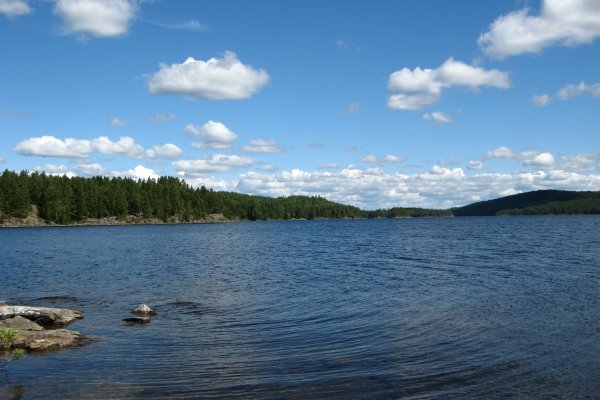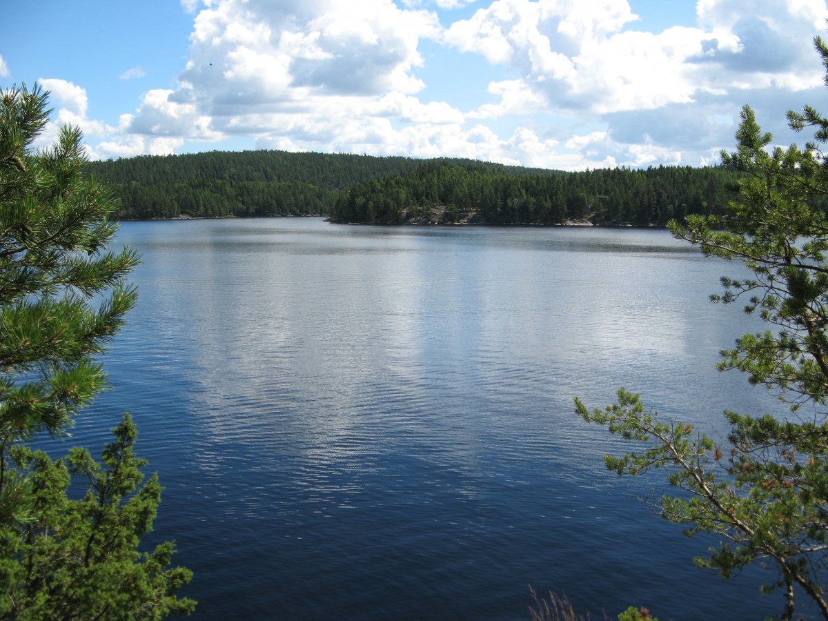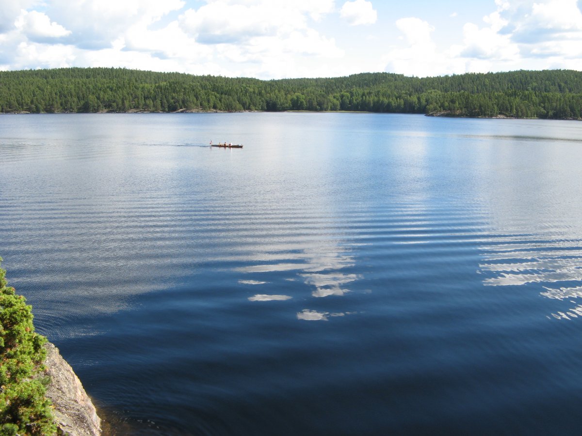 Am 12.07.2014 kam der Bus gegen 08.30h in L an. Alle Gäste wurden mit warmen Brötchen mit Frischkäse oder Würstchen begrüßt. Nach dieser Stärkung wurden die Ausrüstung und das Verpflegungspaket ausgegeben. Frau A. las die Packliste vor, Herr M. kontrollierte, ob alles vollständig war. Nach einer kurzen Kanueinweisung beluden die Beiden das Kanu und da merkte Frau A., dass sie ihre luxuriöse Isomatte im Bus vergessen hatte. Das Scandtrackteam war schnell behilflich und lieh Frau A. eine aus dem Bestand. Dann machten sie sich gen Norden in die Weiten Schwedens. Nachdem alle früher losgefahrenen Kanus auf dem Foxen See überholt wurden, fanden Herr M. und Frau A. eine idyllische Insel auf der sie ohne weitere Kanuten anlandeten. Das Kanu wurde entladen, ein Zeltplätzchen gefunden. Herr M. sammelte Holz machte Feuer. Frau A. badete und machte sich anschließend einen Überblick über das Verpflegungspaket, teilte anhand der Kochbuches die einzelnen Mahlzeiten auf und sortierte die Verpflegungstonne.