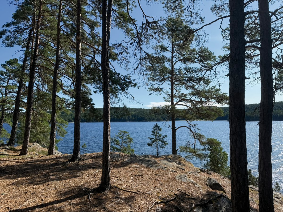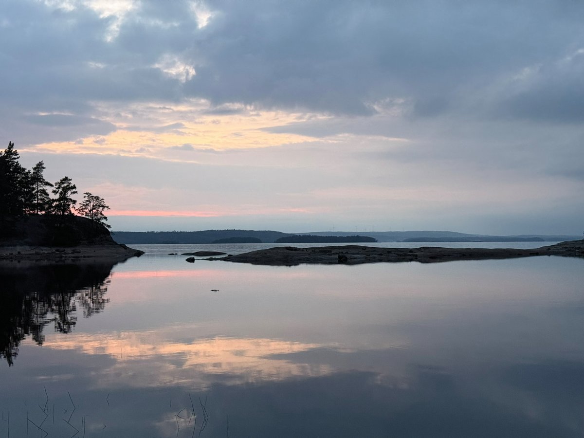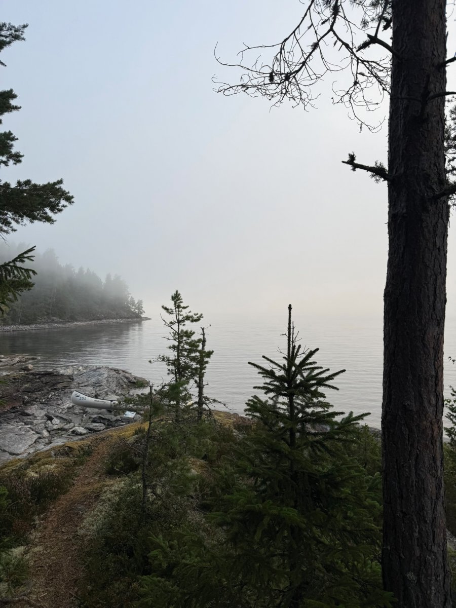 Am nächsten Morgen wurden wir früh durch Hundegebell geweckt. Das wurde immer lauter, bis schließlich ein Jagdhund an unserem Camp vorbeischaute. Er war voll auf seine Aufgabe konzentriert und hat uns total ignoriert. Irritiert aber doch glücklich, dass dieser Hund wohl top ausgebildet war, sind wir dann wieder aufgebrochen. Der Wind war noch immer stark, und ursprünglich wollten wir südlich weiter den Stora Le hinunter paddeln. Doch die Wellen machten uns einen Strich durch die Rechnung. Stattdessen schafften wir es, nur etwa 800 Meter weiter aufs Ost-Ufer zu gelangen, was sich aber als Glücksfall erwies – dort fanden wir einen tollen Wildcampingplatz, der uns den Rest des Tages begleitete. Wir nutzten die Gelegenheit für eine kleine Abkühlung im See, haben geangelt, geschnitzt und einfach nur die Ruhe genossen. Am Abend gab es dann ein leckeres Abendessen in Form von Tortellini mit Käsesauce.