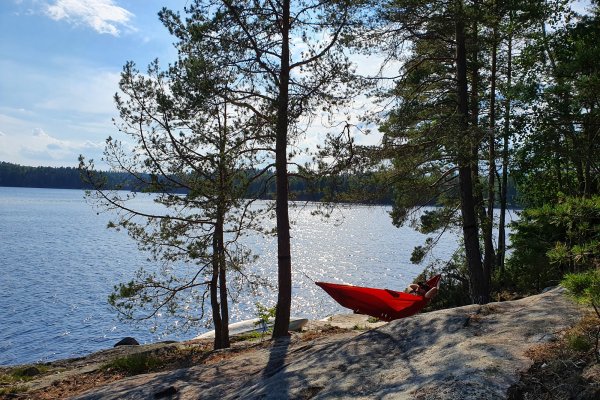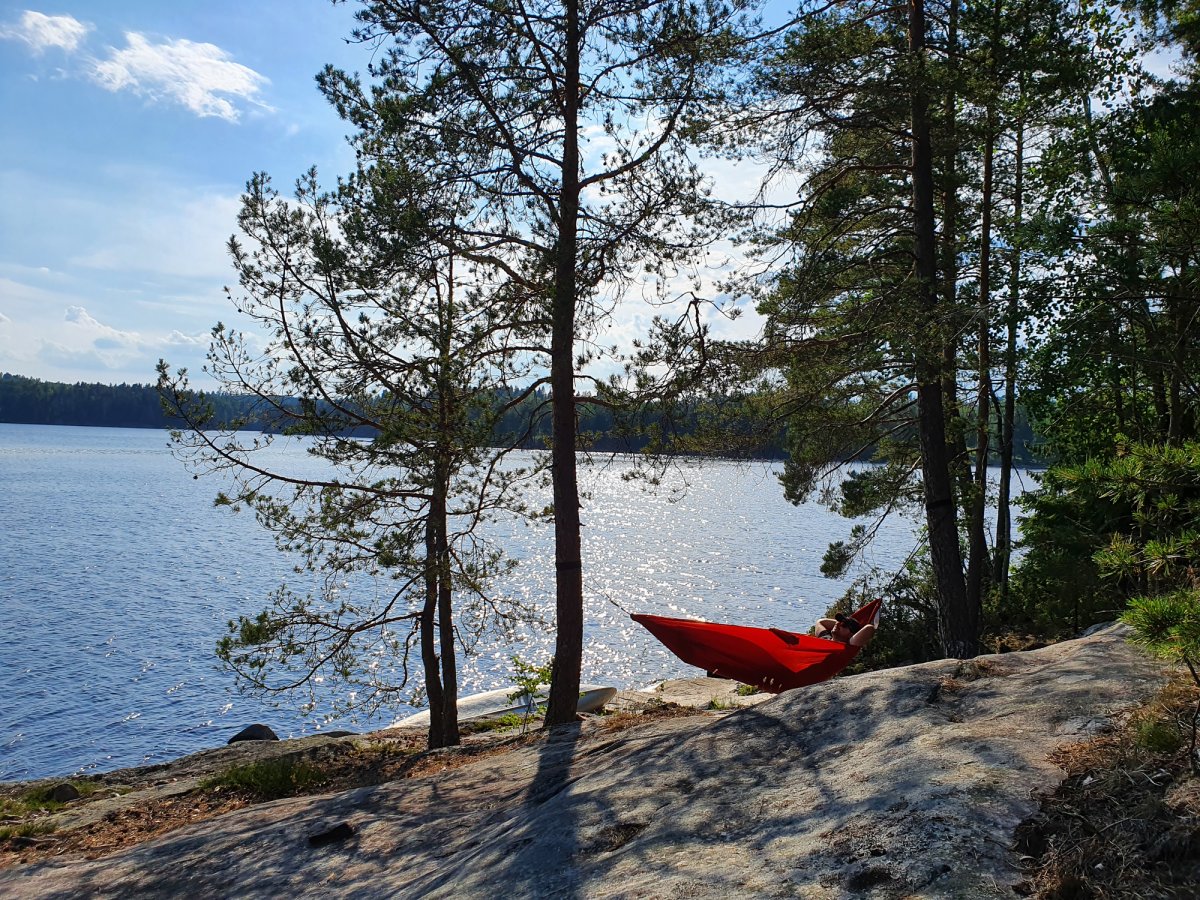 Nach einem kurzen Abstecher in Richtung Norwegen, orientierten wir uns an Trollöd und setzten unsere Fahrt am östlichen Ufer fort. Der Weg nach Guppviksön zog sich und der See wurde zum Schluss auch wieder unruhig. Umso dankbarer waren wir, nachdem wir mit Sonnenschein und sternenklarem Himmel am Dano 7 belohnt wurden. Nach einem Spaziergang über die kleine Insel, genossen wir das schöne Wetter auf den warmen Steinen im Sonnenschein.