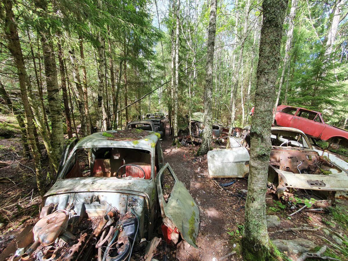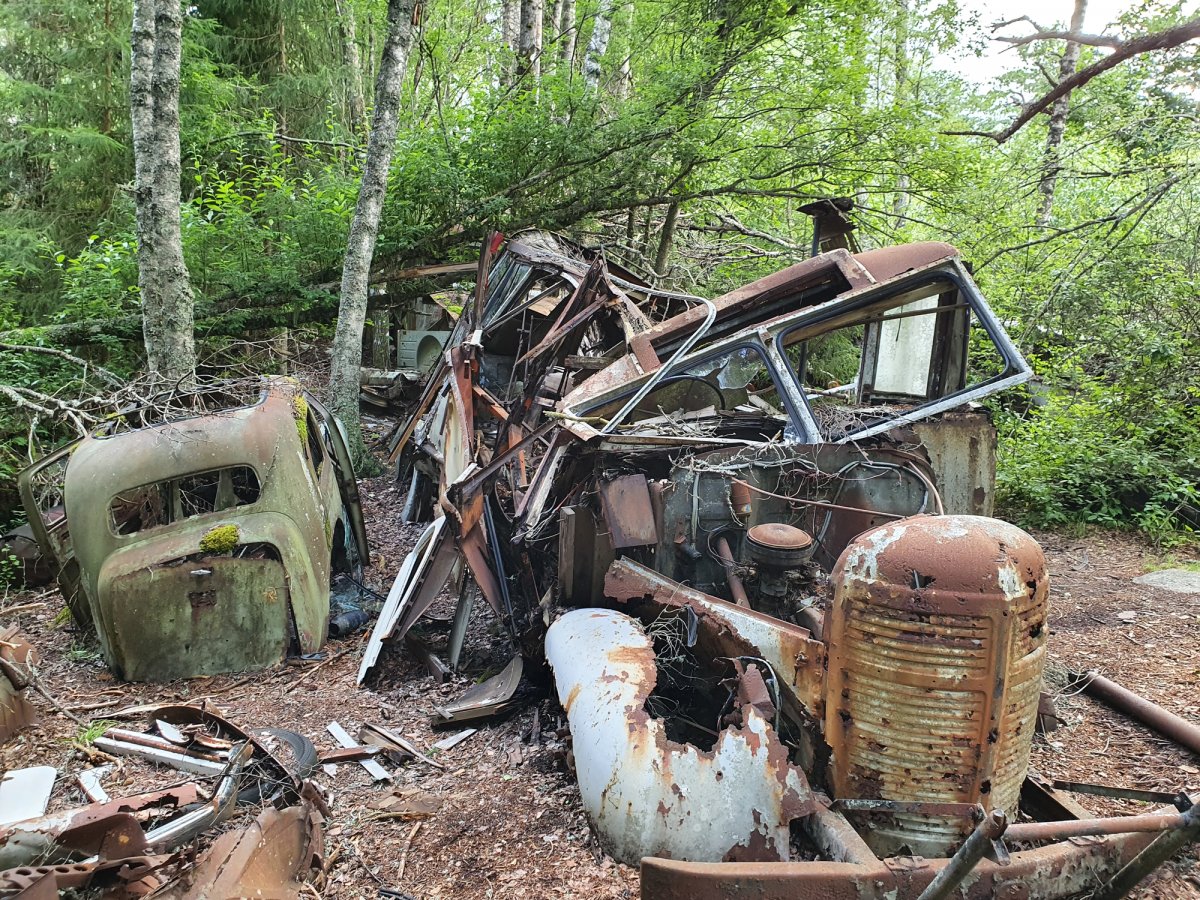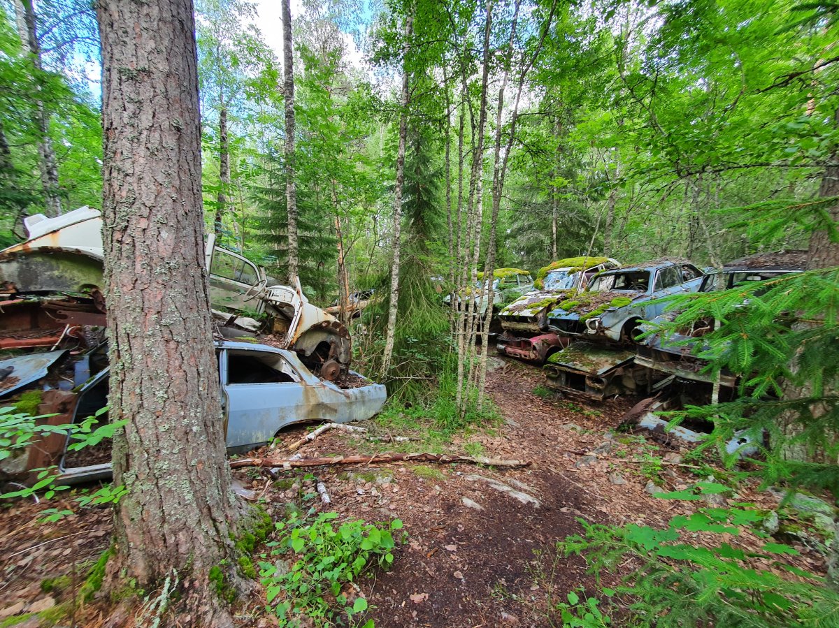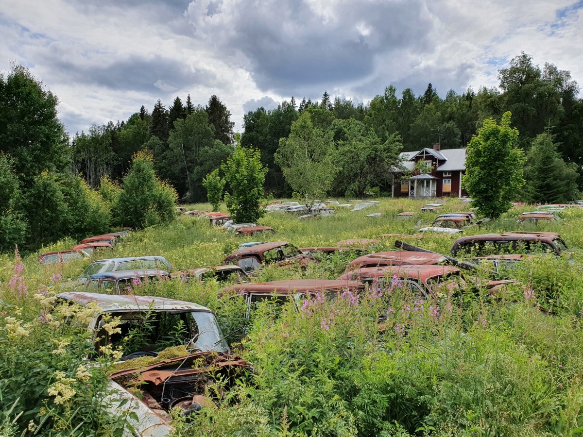 Am Dano 10 trafen wir auf weitere bekannte aus dem Bus, einem Pärchen aus Leipzig welches schon mehr als vier Mal mit Scandtrack hier war. Sie waren im Begriff aufzubrechen. Zuvor luden sie uns jedoch noch auf einen Kaffee ein. Dabei haben Sie uns den Tipp gegeben, den nahegelegenen Autofriedhof in Bástnäs zu besuchen..