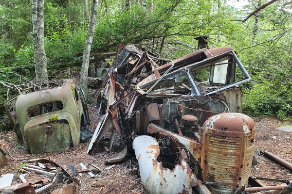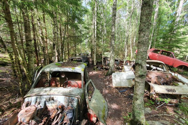 Nach etwa 10 Min. Laufzeit erreicht sieht man erste Autos in Reihe im Wald geparkt, verrostet, teilweise ausgeschlachtet aus den 30er Jahren.