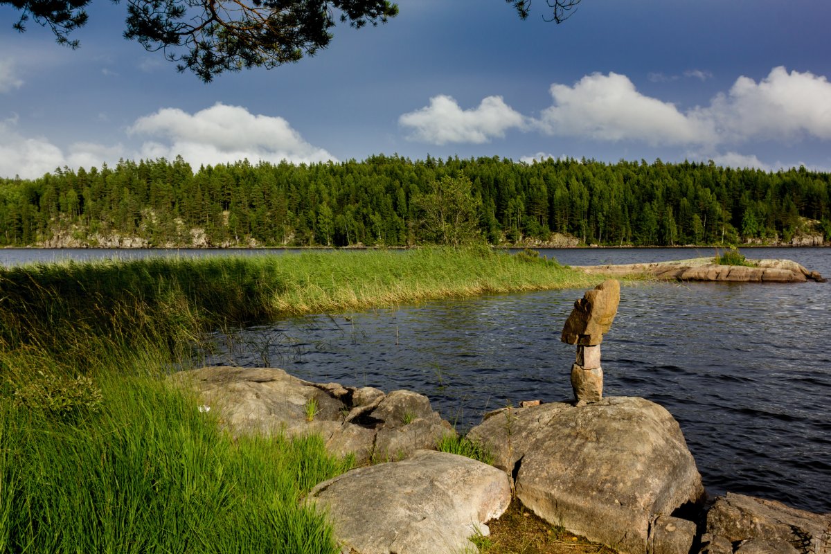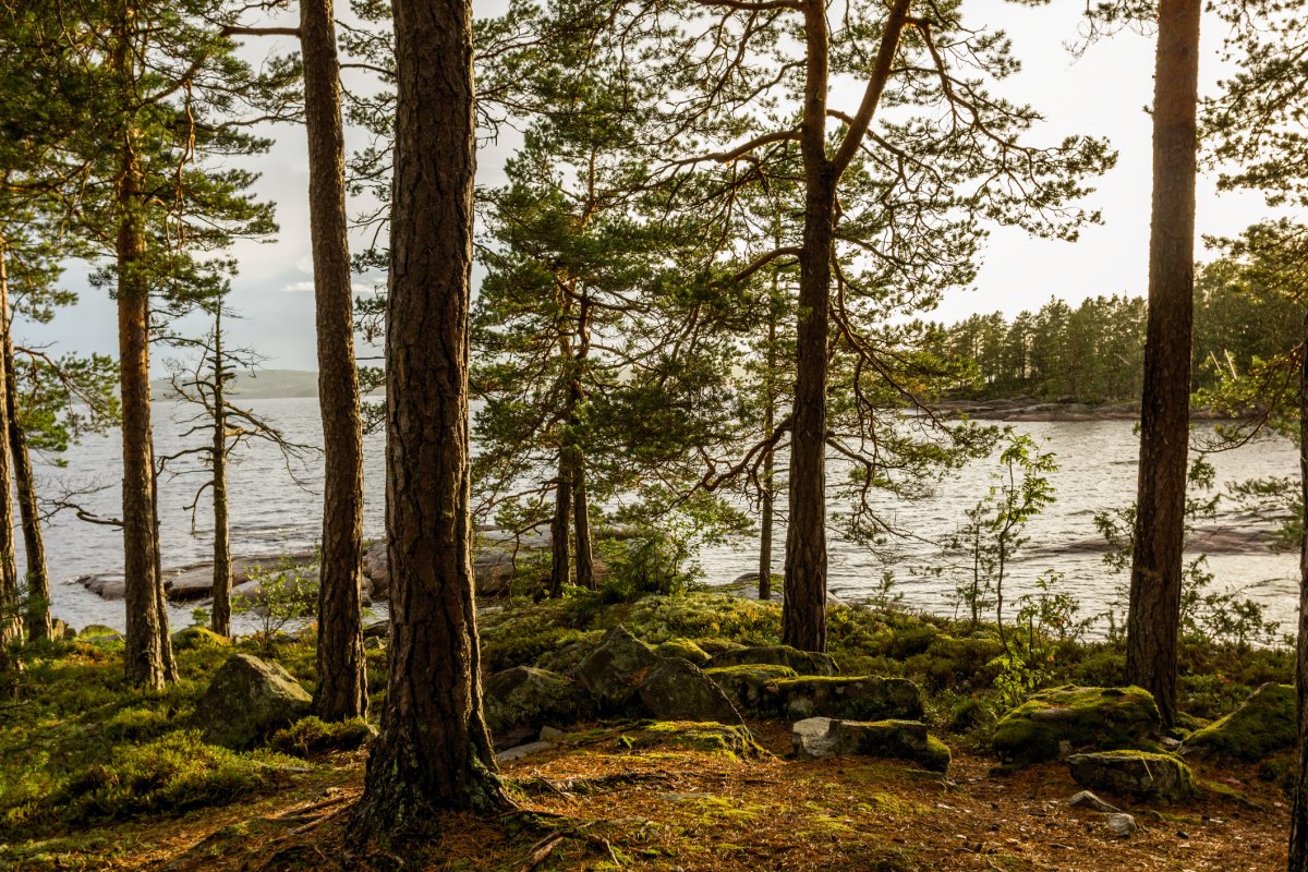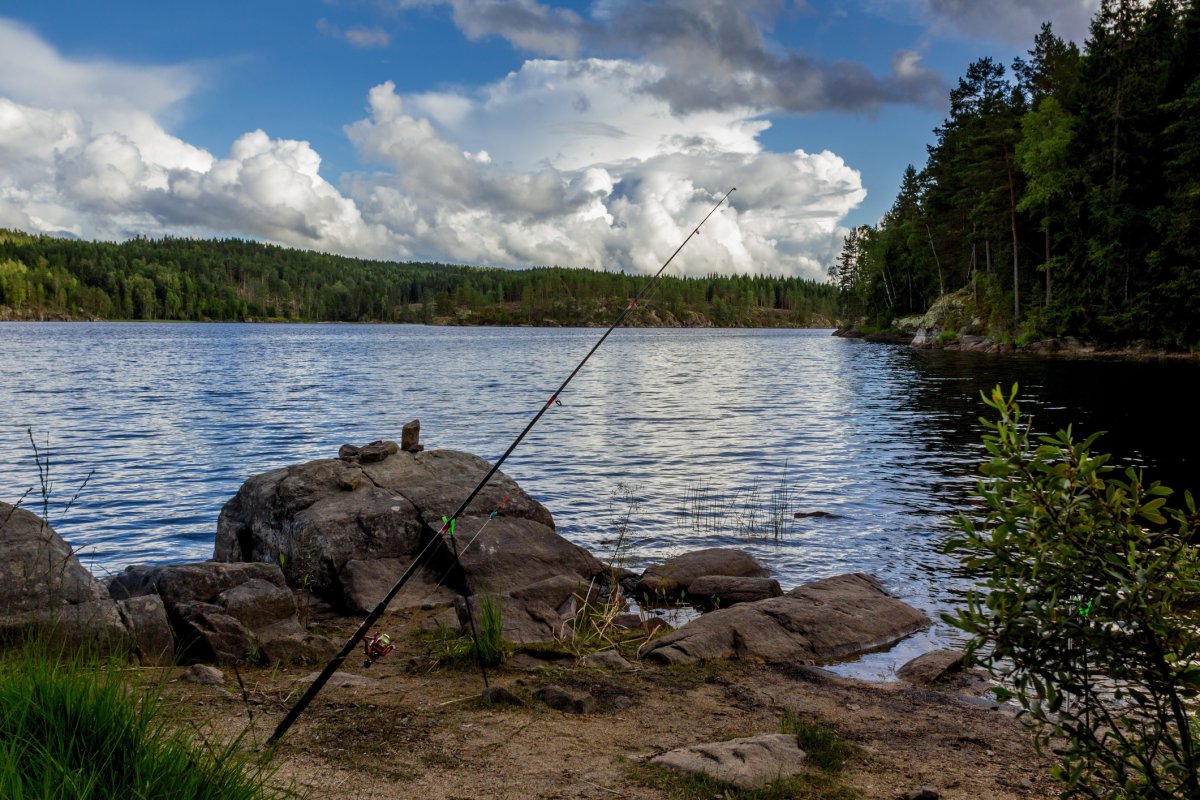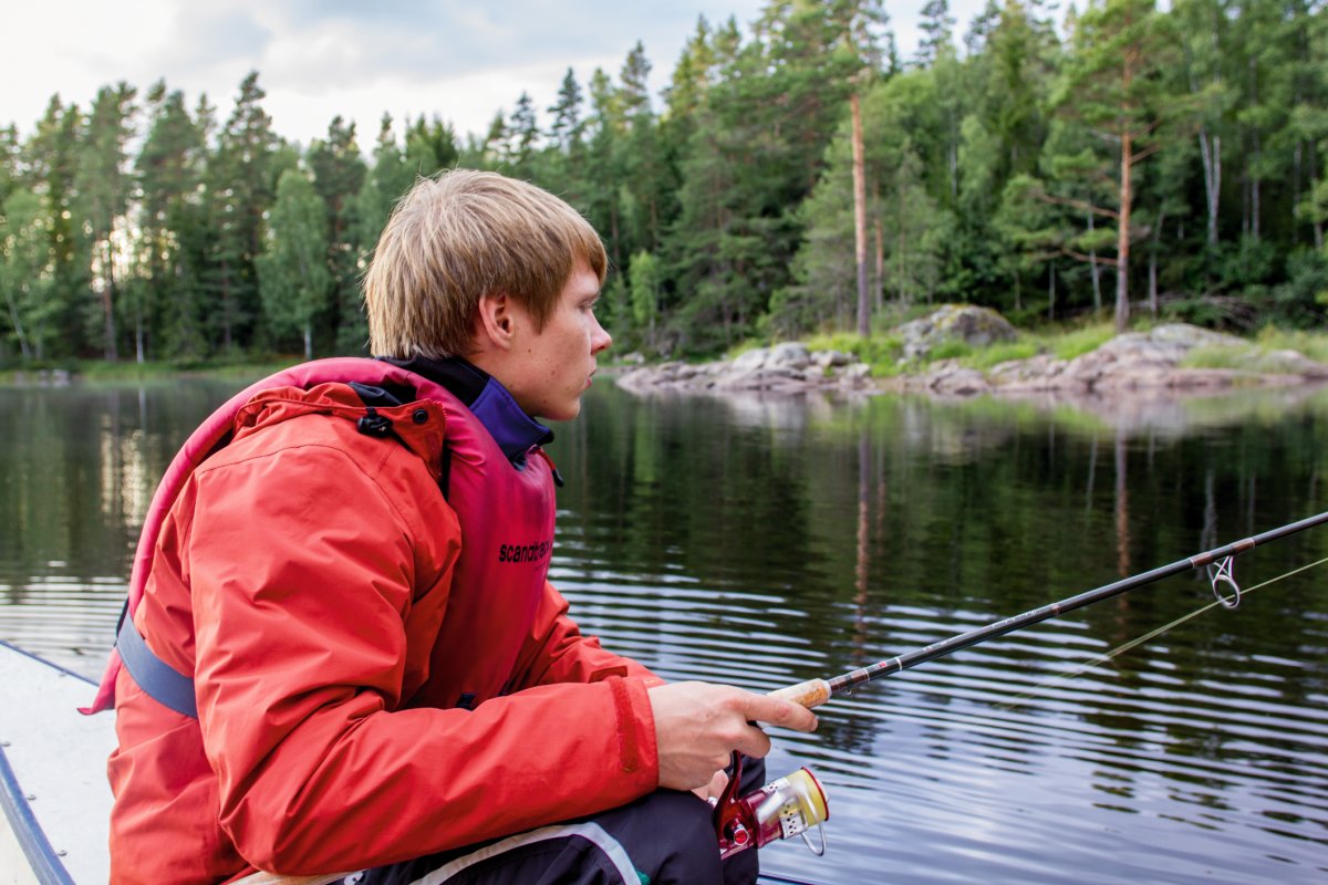 Heute ist früh aufstehen angesagt, denn eine lange Tour zu unserem nächsten Lager steht bevor. Das Wetter spielt mit und dank unserer hervorragenden Zeitplanung können wir uns unterwegs einen Abstecher in eine ruhige Bucht erlauben. Hier lohnt es sich, einmal schnell die Angel auszuwerfen, denn direkt am Ufer ist ein riesiges Seerosenfeld. Schon nach wenigen Minuten beißt ein riesiger Hecht an. Wir hoffen, dass die Angelsehne nicht reißt und nach zehn Minuten steht fest, dass es sich tatsächlich um den großen Fisch handelt, den wir uns schon den ganzen Urlaub lang gewünscht haben: 94cm, 5800g und eine üppige Mahlzeit für vier Personen.