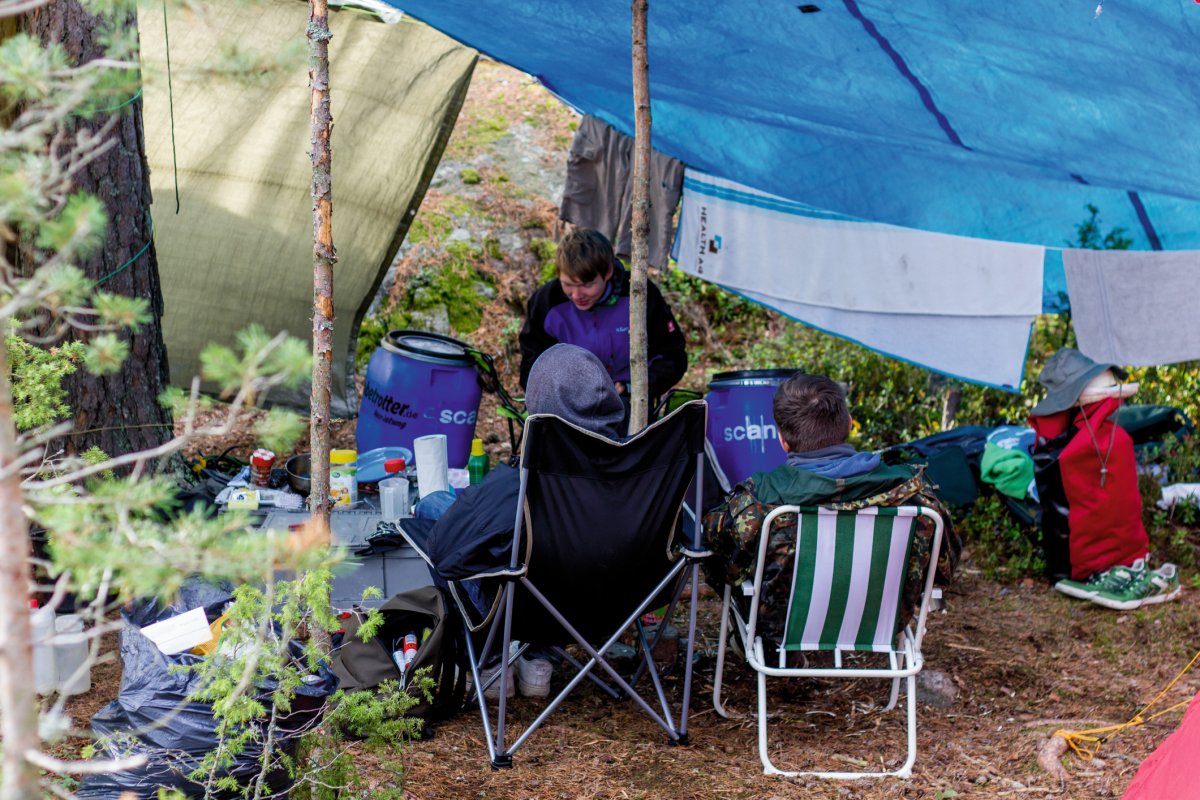 Da sind sie endlich, die erhofften Sonnenstrahlen. Während unsere nassen Sachen trocknen, baden und sonnen wir uns an unserem persönlichen Strand. Am Nachmittag geht es auf Erkundungstour, um Lagerplatz Nummer Zwei ausfindig zu machen. Die mitgebrachten Walkie Talkies erweisen sich hier als besonders hilfreich, um Kontakt zu den beiden anderen im Basislager zu halten, die uns über die aktuelle Wettersituation und den Fortschritt bei der Essenzubereitung informieren, während wir von unseren Entdeckungen berichten.