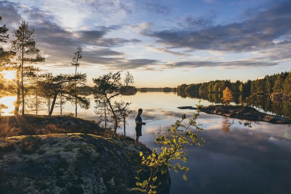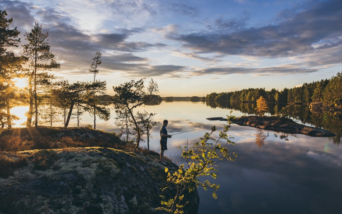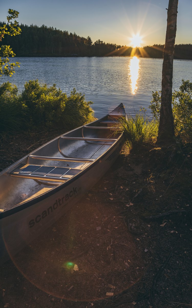 Christoph und ich schlugen unser Zelt am kleinen Sandstrand auf, während Max beschloss die letzte Nacht im Wald auf dem Hügel mit Ausblick auf den See Foxen zu verbringen. Gegen Abend kamen noch 3 weitere Boote mit schwedischen Familien an die Insel. Dies schien also auch unter den Einheimischen ein kleiner „Geheimtipp“ zu sein, an dem man sich traf und gemeinsam den Abend und die Nacht verbrachte – was dem deutschen Städter der Park ist, ist anscheinend dem Schwede die kleine Insel. Max versuchte nochmal sein Glück, doch noch einen Fisch zu fangen, was jedoch leider erfolglos blieb. Wir genossen den letzten Sonnenuntergang und Abend und wollten den Gedanken noch nicht so recht wahr haben, dass es am nächsten Tag wieder zurück nach Deutschland gehen sollte.