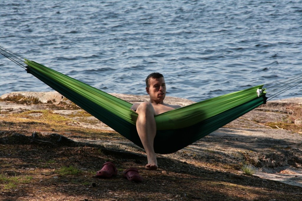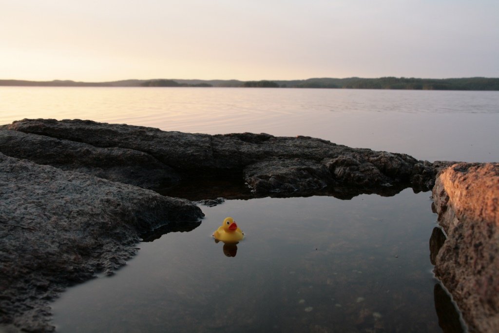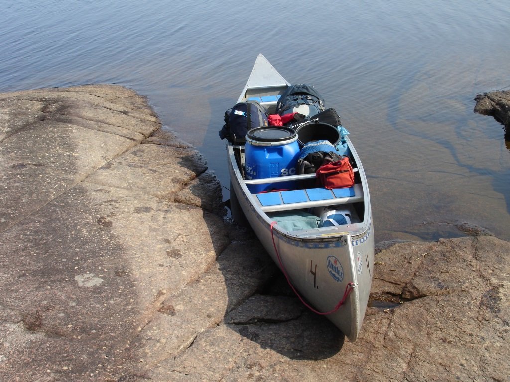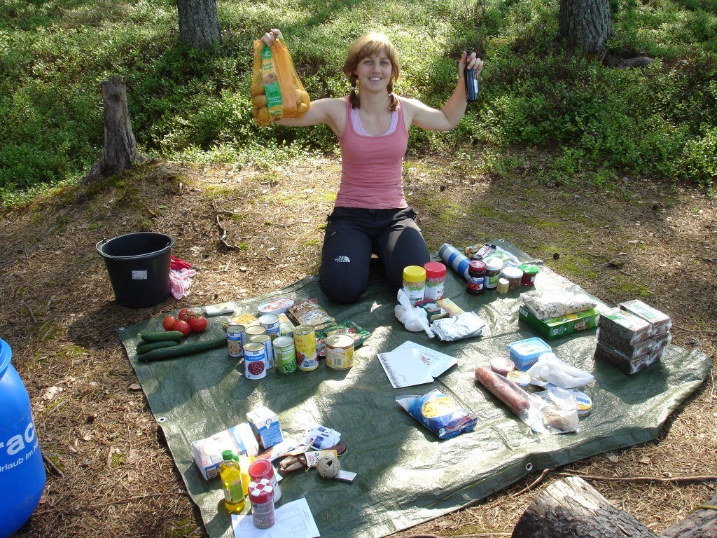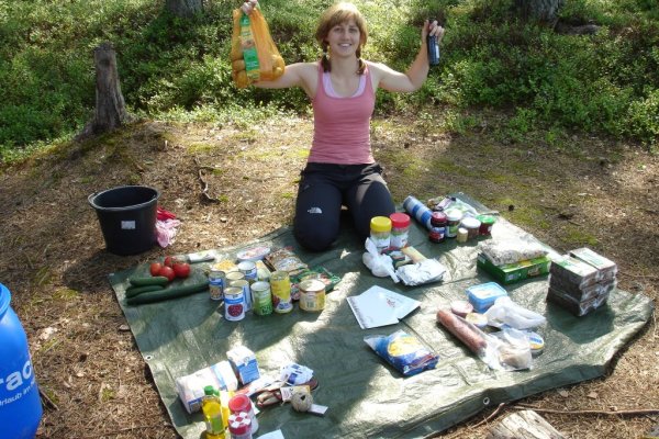 Schnell ist das Kanu ausgeräumt, der beste Lagerplatz gefunden und das Zelt aufgestellt. Achtung: Mit dem felsigen Untergrund ist nicht zu spaßen. Den letzten Hering müssen wir dreimal gerade biegen. Dann lassen wir ihn einfach weg und widmen uns stattdessen der Lebensmitteltonne. Was wir sehen ist toll: Zu Zweit ist das Nahrungsmittelangebot riesig! Verhungern werden wir (vorerst) nicht. Die heimlich eingepackten Müsliriegel bleiben in der Tasche. Zufrieden drehen wir noch eine letzte Runde auf der Insel und fallen glücklich in den Schlafsack.