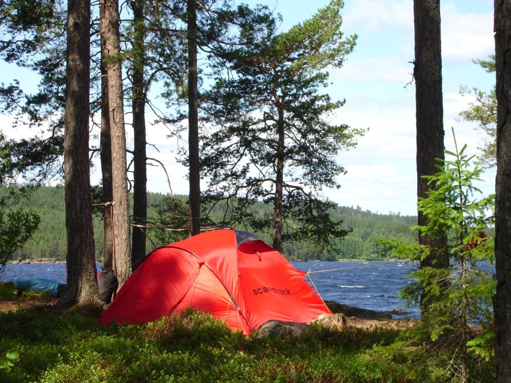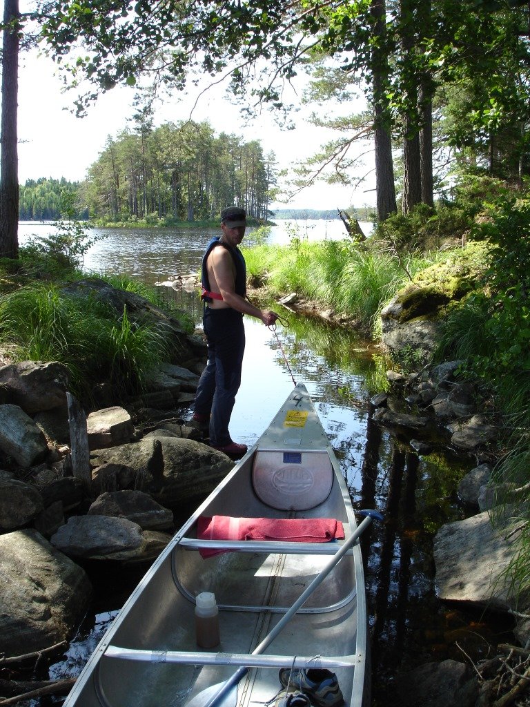 Doch zurück zum Anfang. Sicher gibt es einen romantischeren Start in den Urlaub als eine 1200km lange Busfahrt und Fährfahrten mitten in der Nacht. Aber es lohnt sich! Kaum haben wir Schweden erreicht, werden die Wälder immer dichter und die Seen immer zahlreicher. Erleichtert stellen wir fest: Wir sind da! Im Basiscamp werden wir mit einem bekannten schwedischen Leckerbissen begrüßt. 90% unserer Mitreisenden besteigen danach das Kanu. Wir steigen... noch einmal in den Bus. Zum Glück dauert die Fahrt nicht lange. Endlich am Stora Bör angekommen, wollen wir nur noch aufs Wasser. Während wir uns noch einmal absichern, dass es wirklich Trinkwasserqualität hat, sitzen die ersten schon im Boot. Auch wir packen schleunigst unsere Sachen und legen ab. Insel 1 sollte laut Beschreibung gleich um die Ecke vom Campingplatz liegen. Bei gefühlt tausend kleinen Inseln ist diese Aussage jedoch mit Vorsicht zu genießen. Augen auf bei der Urlaubswahl! Unser dritter Landungsversuch klappt schließlich. Willkommen auf der Insel.