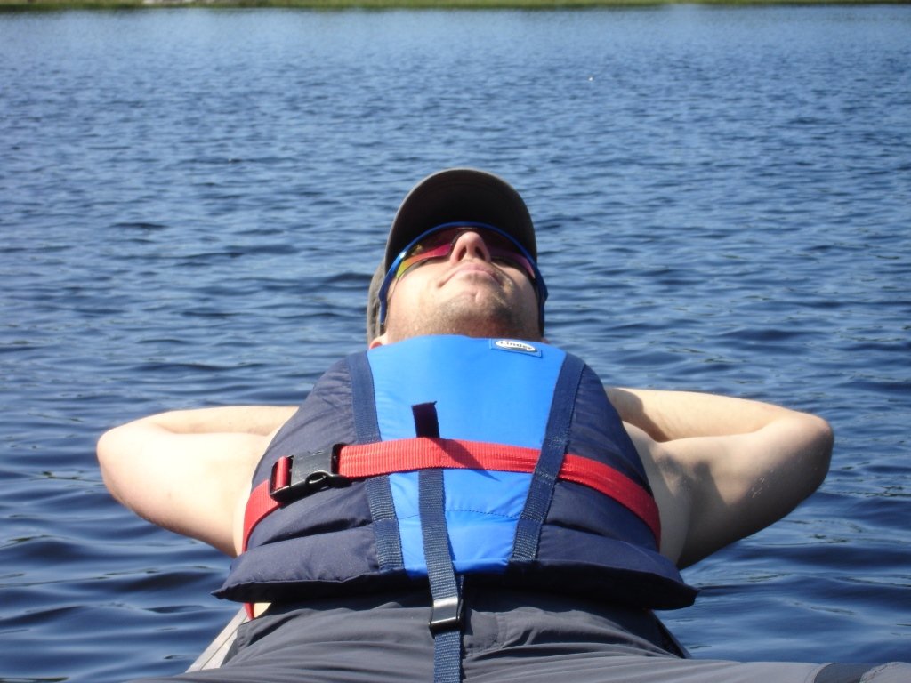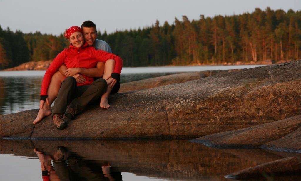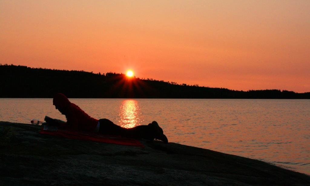 Am nächsten Morgen kitzelt uns die Sonne wach. Ein Blick auf die Uhr zeigt 04:30 Uhr! Beinahe hätten wir die Mitternachtssonne vergessen. Wenig später klettern wir aus dem Zelt und decken unseren Frühstücksfelsen (es gibt auch einen fürs Abendbrot, zum Abwaschen, Anlegen, Schwimmen und Relaxen). Bei Kaffee und Tee schauen wir zu, wie der See erwacht, die Enten ihre Bahnen ziehen und die Nachtangler von kleinen Kanus abgelöst werden. Das ist Urlaub! Und jetzt?