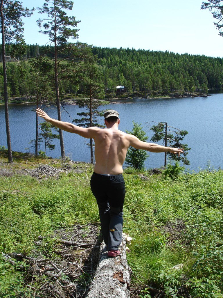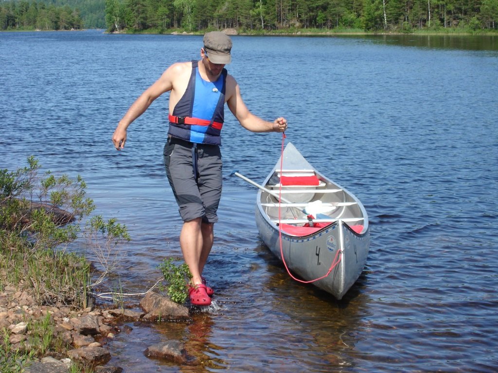 Dem Freizeitangebot sind keine Grenzen gesetzt. Wir besteigen das Kanu und ziehen stundenlang unsere Runden durch den See. Manchmal werden wir von den Wellen ordentlich durchgerüttelt, dann ist der See wieder spiegelglatt. Es lohnt sich, auch die kleinen Zu- und Abflüsse zu erkunden. Während auf dem Hauptsee ein reges Treiben herrscht, sind wir auf den nahegelegenen Seen ganz allein. Schwimmen und Tauchen sind ein Muss! Abends sind wir glücklich und zufrieden, nur der Magen knurrt. Während das Lagerfeuer leise vor sich hin knistert, wagen wir einen Blick ins Kochbuch. Wir entschließen uns für die schwedische Steinofen-Pizza. Nachdem wir bei der ersten noch ein bisschen ungeduldig den halb rohen Teig aßen, war die zweite großartig. Danke für die tolle Idee!