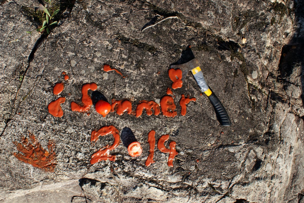 Es war der Tag von Theresas Geburtstag und wir hatten uns gedacht, als Überraschung Brötchen zu backen. Von der Idee her machbar, scheiterte es dann doch an der mangelnden Feuerhitze. Ehe die Brötchen durch waren, hatten wir vor Hunger schon unseren üblichen Tee und das Müsli und die Marmeladenbrote verzehrt. Kurz bevor wir abfuhren, nahmen wir die Brötchen vom Feuer und nahmen sie als Mittagessen mit. An dem Tag paddelten wir zur norwegischen Grenze, beziehungsweise kurz dahinter. Theresa hatte ungünstigerweise eine übelste Erkältung ausgebrütet und war nach sechs Kilometern so fertig, dass wir zügig eine Hütte suchten, und sie Schlafen ließen. Wir nutzen die Zeit und wanderten um die halb schwedische, halb norwegische Insel einmal komplett rum. Wir besichtigten den Grenzstein, probierten ein paar Preiselbeeren, platzten naiv und unbekümmert mitten in die Beziehungskrise zweier anderer deutscher Kanuten, grüßten höflich, liefen weiter, verloren zwischendurch mal den Pfad und stolperten über naturgerodete Flächen, ehe wir nach einer guten Stunde wieder an der Hütte ankamen. Paula und Imke fanden noch mal die Energie, mit dem Kanu loszufahren, während ich bei der immer noch müden Theresa blieb und einfach nur die Seele baumeln ließ. Abends gelang uns aber noch ein kleines Wunder: Unser erstes richtig gut brennendes Feuer. Während wir zuvor immer versagt hatten, Scheite, die die Dicke einer Banane überstiegen, zum Brennen zu kriegen, hatten wir diesmal endlich den Bogen raus. Vermutlich lag es daran, dass wir unser Holz zum ersten Mal selbst frisch zersägt hatten. Jedenfalls brannte es so, wie ein Feuer brennen muss. Es gab ein feudales Mahl mit Bratkartoffeln, Jägerbraten aus der Konserve und Brechbohnen. Über uns funkelten wieder die Sterne durch die Baumwipfel. Dann krochen wir in unsere Hütte und schliefen tief und fest.
