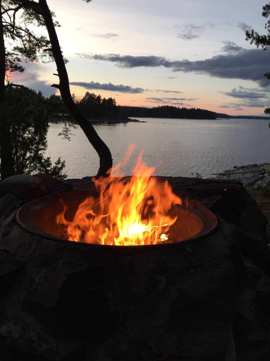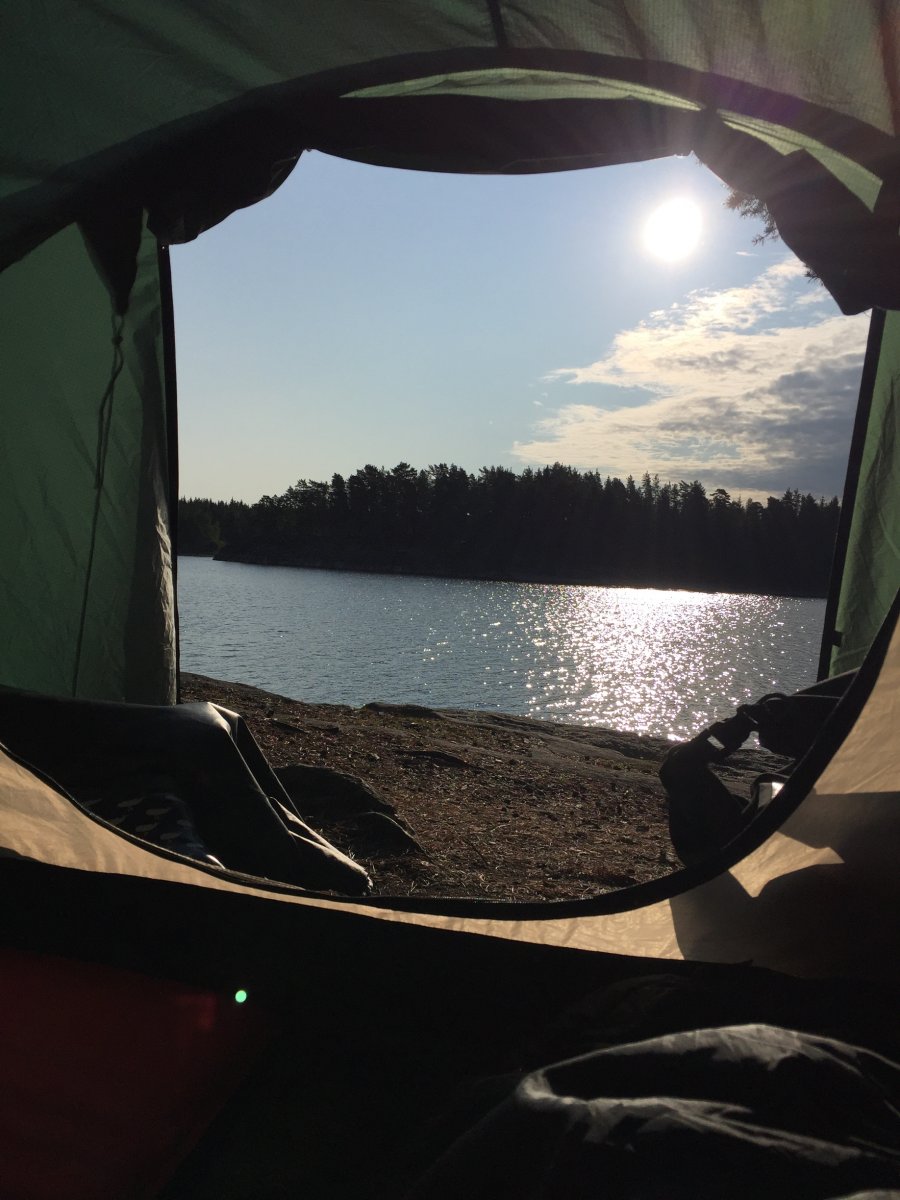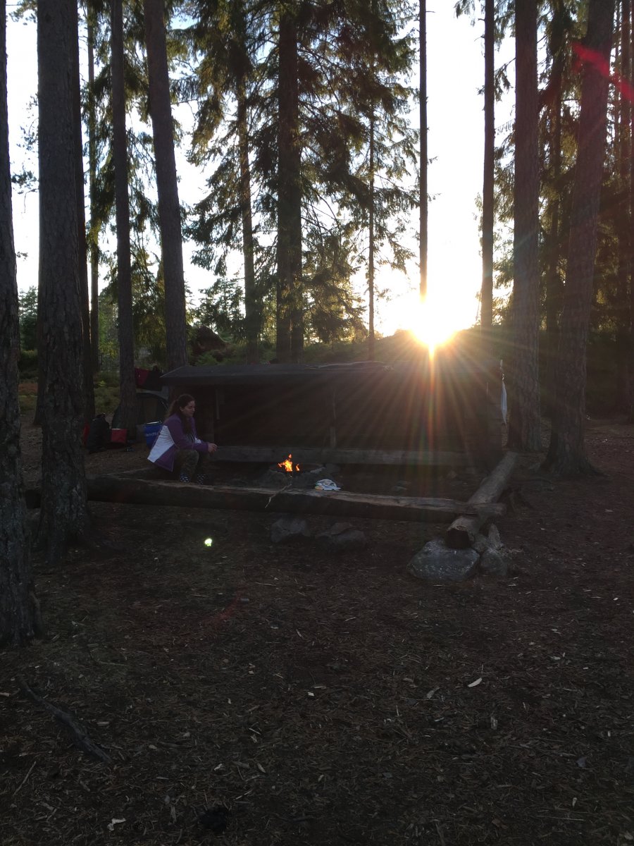 Unsere Route führte uns zunächst in den Norden, wo wir die zweite Nacht mit einer geführten Gruppe am Rastplatz 38 verbracht haben (Grüße an die Morning Light Tour mit Nikolai :D) Zum Frühstück gab es dann Pancakes für insgesamt 16 Leute und so ein Teig muss natürlich auch erstmal im Eimer angerührt werden...es schmeckte besser als es aussah :D Der Montag zerrte anschließend ganz schön an unseren Nerven, da es ziemlich stürmisch wurde und wir statt zum angepeilten Rastplatz 19, notgedrungen an der 14 halten mussten. Ich war froh, dass wir es überhaupt noch dorthin geschafft haben, nachdem das Kanu zeitweise schon ganz schön über die Wellen gesprungen ist...Die Nacht im Zelt wurde dort dann ebenfalls noch ziemlich stürmisch und wir beschlossen am nächsten Tag lieber gar nicht loszufahren. Ein paddelfreier Tag war allerdings auch nicht falsch, so hatten wir mehr Zeit um Holz zu sammeln und zu hacken. Außerdem bekamen wir hier am Abend noch Gesellschaft von zwei Jungs, die sich - nachdem sie uns kennengelernt hatten - nur noch gefragt haben, wie wir beide das hier eigentlich überleben. Aber schließlich waren es nicht wir, die beim Wasser abkochen den Topf umgeschmissen und damit das Feuer gelöscht haben. Gut, wir waren es auch nicht, die das Feuer wieder angebracht haben, aber theoretisch hätten wir es natürlich gekonnt ;-) Der Mittwoch begrüßte uns dann zum Glück wieder mit wunderschönem Sonnenschein, sodass wir uns weiter auf den Weg Richtung Norwegen machen konnten. Bevor wir dort ankamen, verbrachten wir aber auch noch eine Nacht bei Rastplatz Nummer 11, der für uns auf jeden Fall einer der schönsten Rastplätze war. Die restlichen Tage vergingen anschließend noch wie im Flug und wir konnten es kaum glauben, als wir am Samstag Morgen ein letztes Mal aus unserem Zelt krochen. Wir versuchten die letzten Züge der schwedischen Natur zu genießen und machten uns dann zurück auf den Weg ins Basiscamp.