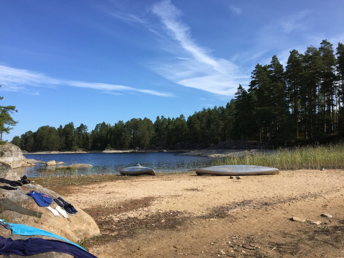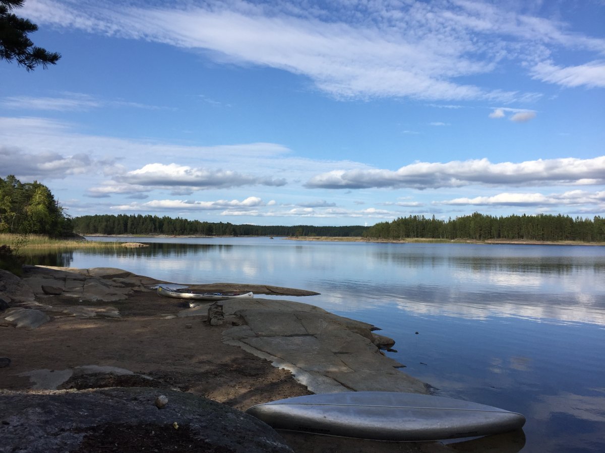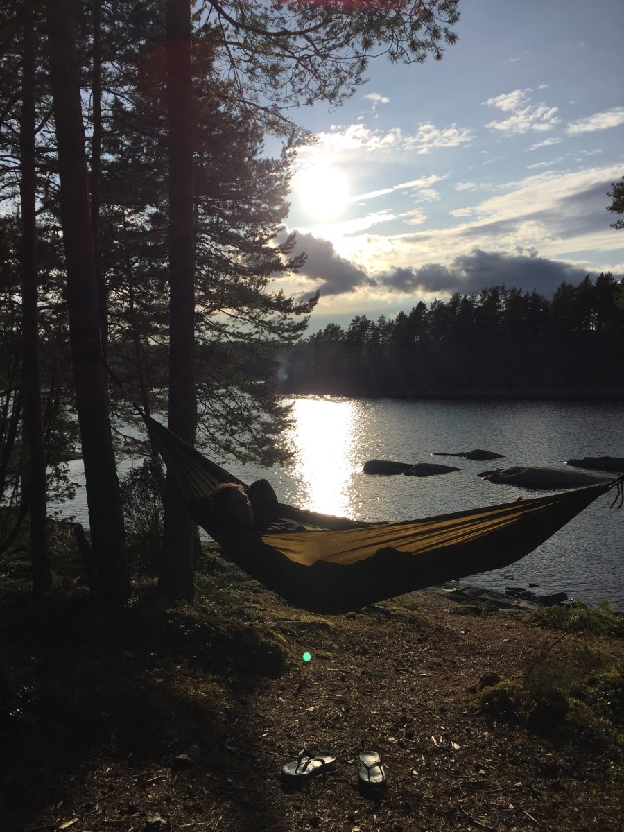Unsere Route führte uns zunächst in den Norden, wo wir die zweite Nacht mit einer geführten Gruppe am Rastplatz 38 verbracht haben (Grüße an die Morning Light Tour mit Nikolai :D) Zum Frühstück gab es dann Pancakes für insgesamt 16 Leute und so ein Teig muss natürlich auch erstmal im Eimer angerührt werden...es schmeckte besser als es aussah :D Der Montag zerrte anschließend ganz schön an unseren Nerven, da es ziemlich stürmisch wurde und wir statt zum angepeilten Rastplatz 19, notgedrungen an der 14 halten mussten. Ich war froh, dass wir es überhaupt noch dorthin geschafft haben, nachdem das Kanu zeitweise schon ganz schön über die Wellen gesprungen ist...Die Nacht im Zelt wurde dort dann ebenfalls noch ziemlich stürmisch und wir beschlossen am nächsten Tag lieber gar nicht loszufahren. Ein paddelfreier Tag war allerdings auch nicht falsch, so hatten wir mehr Zeit um Holz zu sammeln und zu hacken. Außerdem bekamen wir hier am Abend noch Gesellschaft von zwei Jungs, die sich - nachdem sie uns kennengelernt hatten - nur noch gefragt haben, wie wir beide das hier eigentlich überleben. Aber schließlich waren es nicht wir, die beim Wasser abkochen den Topf umgeschmissen und damit das Feuer gelöscht haben. Gut, wir waren es auch nicht, die das Feuer wieder angebracht haben, aber theoretisch hätten wir es natürlich gekonnt ;-) Der Mittwoch begrüßte uns dann zum Glück wieder mit wunderschönem Sonnenschein, sodass wir uns weiter auf den Weg Richtung Norwegen machen konnten. Bevor wir dort ankamen, verbrachten wir aber auch noch eine Nacht bei Rastplatz Nummer 11, der für uns auf jeden Fall einer der schönsten Rastplätze war. Die restlichen Tage vergingen anschließend noch wie im Flug und wir konnten es kaum glauben, als wir am Samstag Morgen ein letztes Mal aus unserem Zelt krochen. Wir versuchten die letzten Züge der schwedischen Natur zu genießen und machten uns dann zurück auf den Weg ins Basiscamp.