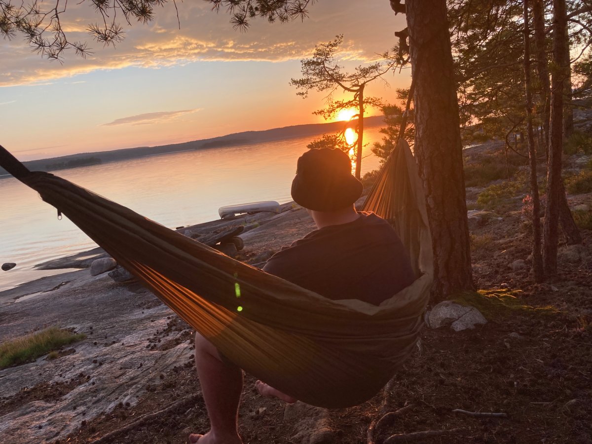 Für die erste Übernachtung paddelten wir zu einer Insel, bauten das Zelt und die Hängematte auf, lachten beim ersten kühlen Bad und es gab Bratkartoffeln über dem Spirituskocher im Mondschein. Entsprechend tief und fest haben wir danach geschlafen.
