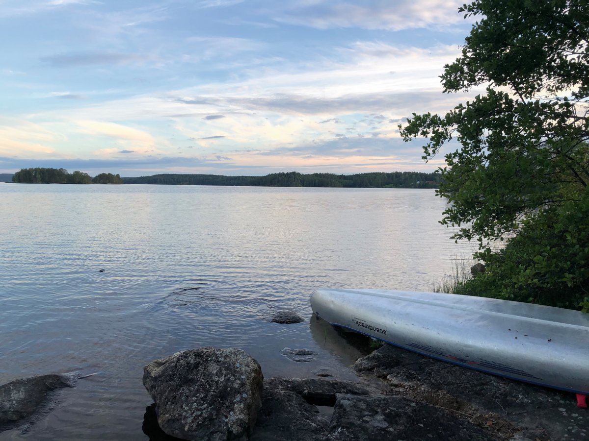 Wir hatten nun 2 Tage in der schwedischen Einsamkeit, da wir niemandem mehr begegnet sind. Das sollte sich jedoch am darauf folgenden Tag schlagartig ändern. Durch das für den nächsten Tag angesagte schlechte Wetter haben sich alle frühzeitig ein DANO oder einen Zeltplatz gesucht, wir nicht, wir paddelten, das Wetter war noch perfekt und wir dachten, wir finden schon etwas. Als wir dann gegen Abend einen Anlegeplatz mit Feuerstelle suchten, waren alle schon lange belegt, aber bei der letzten erreichbaren Gelegenheit trafen wir auf sehr nette Mitreisende und machten uns alle gemeinsam am Feuer gemütlich.