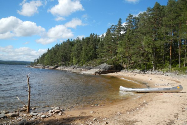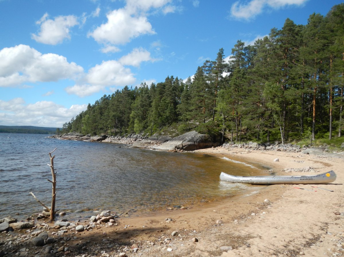 Wir entschieden uns dazu, dass Zelt nicht am Dano aufzubauen, sondern weiter unten. Es war wieder ein sehr schöner Platz und wir setzten uns danach noch in die Sonne am kleinen Sandstrand. Zwischenzeitlich legte noch ein weiteres Kanu an, die beiden Jungs wollten aber noch weiter in Richtung Norden. Am späten Nachmittag kamen noch ein paar weitere Kanuten, aber der Bereich ist ordentlich groß, dass jeder Platz hat und man total ungestört ist.
