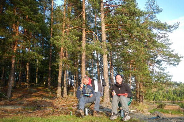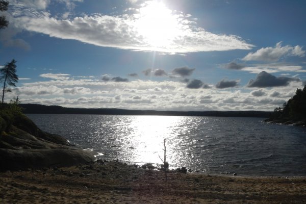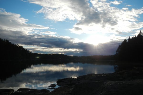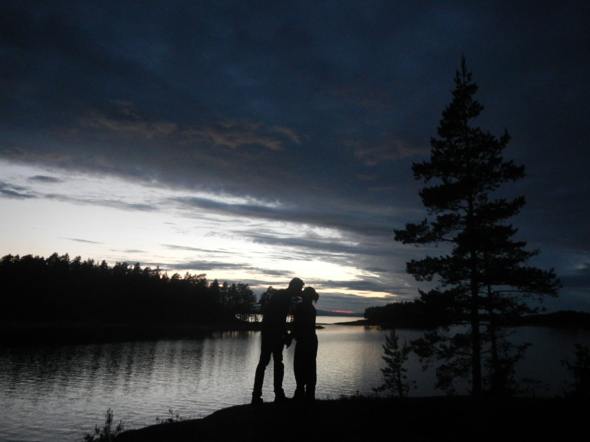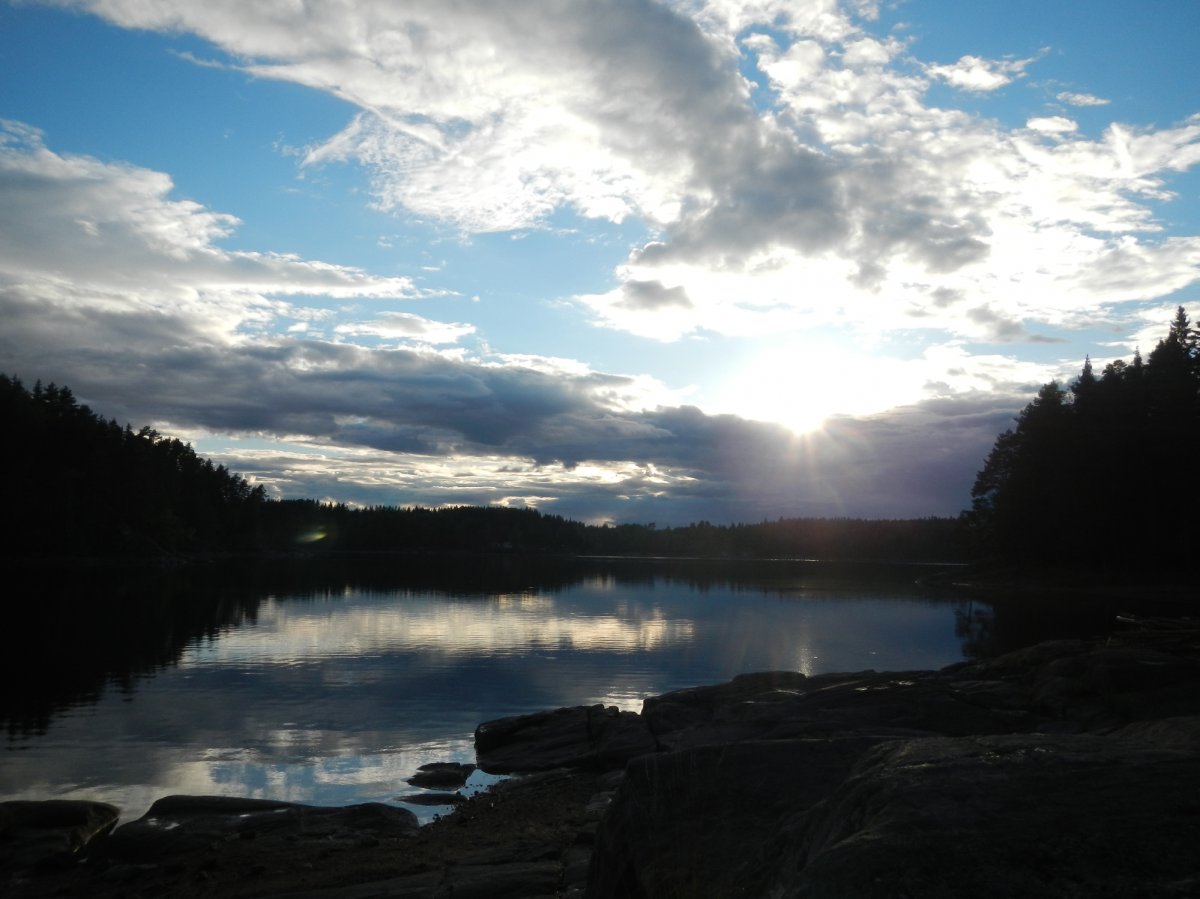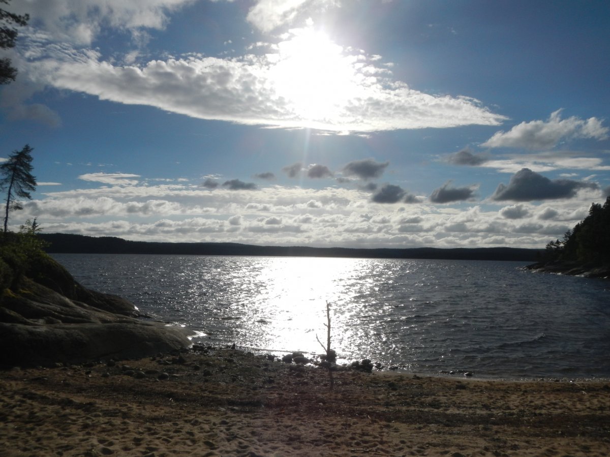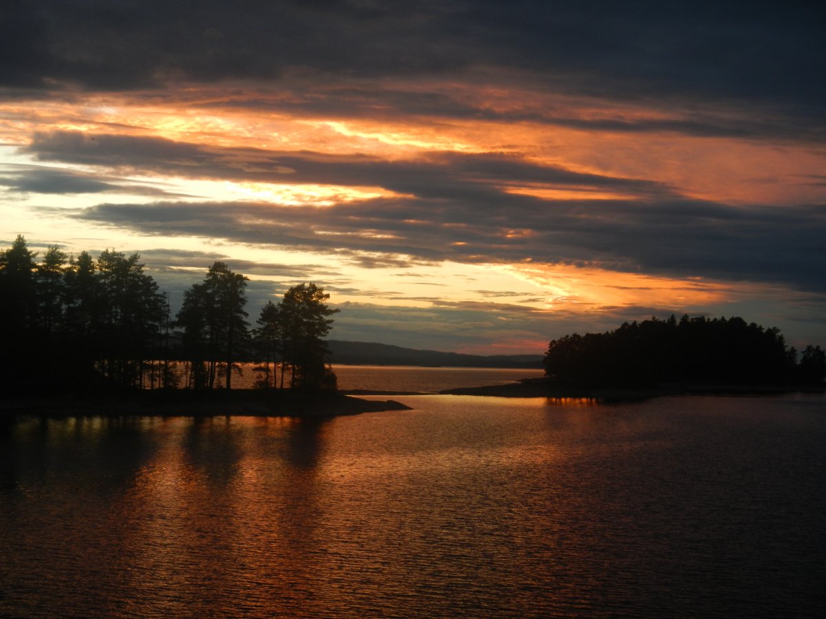 Es war ein schöner Abend, die Sonne ging zwar etwas unter, aber richtig dunkel wurde es die Nacht über nicht. Wir lagen gegen 21:30 Uhr im Zelt. Wir hatten das Außenzelt offen gelassen, so dass wir etwas auf den See gucken konnten… Ein Traum!