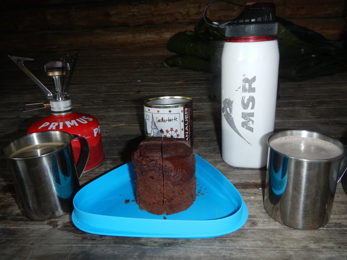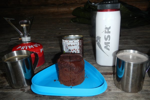 Die Nacht war gemütlich, wir haben beide ganz gute Isomatten und schliefen bis ca. 8 Uhr. Nach einem kleinen Bad im See frühstückten wir ausgiebig mit Nutella Brot für mich, Wurstbrot für Andi und einer Portion warmer Milch mit Muesli.