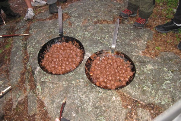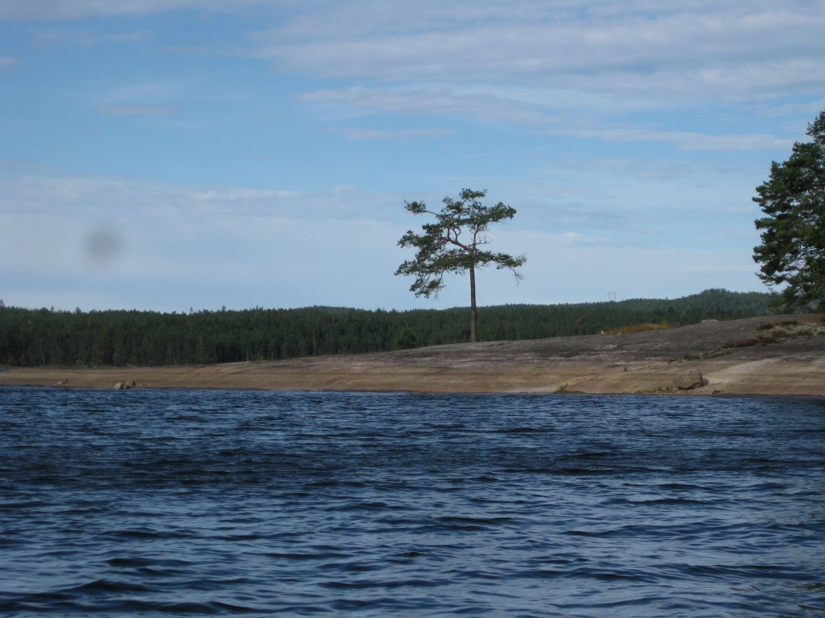 Nach dem Essen holte der Guide Holger seine Gitarre raus und spielte am Lagerfeuer. Als wir am nächsten Tag weiter fahren wollten sagte uns Holger das das Wetter sehr schlecht mit Gewitterwarnung werden soll und die Windgeschwindigkeit stark ansteigen sollte. Daher beschloss er mit seiner Gruppe aus Sicherheitsgründen nicht weiter zu fahren und wir taten dies auch nicht. Also haben wir den Tag zusammen mit schnitzen und Feuerkunde verbracht und haben abends zusammen \"Elchköttel\" gegessen wozu uns die Gruppe eingeladen hatte. Als Dank haben wir dann die Pfannen gereinigt und für die Gruppe Popcorn den wir mitgenommen hatten gemacht. Das genossen wir dann bei Lagerfeuer und Gitarrenmusik. Der nächste Tag begann dann wieder mit Packen und wir fuhren Richtung DANO 16. Jedoch nicht über den Hauptsee sondern über einen Seitenarm mit einer kurzen Untergestelle. Das DANO war jedoch schon belegt und gegenüber war eine Feuerstelle neben dem DANO 15 grade frei geworden. Also beschlossen wir diese zu nutzen. Da das Wetter schon wieder sehr schlecht aussah spannten wir sofort unser Tarp und bauten unsere Hängematten auf bevor wir etwas zu Essen machten.