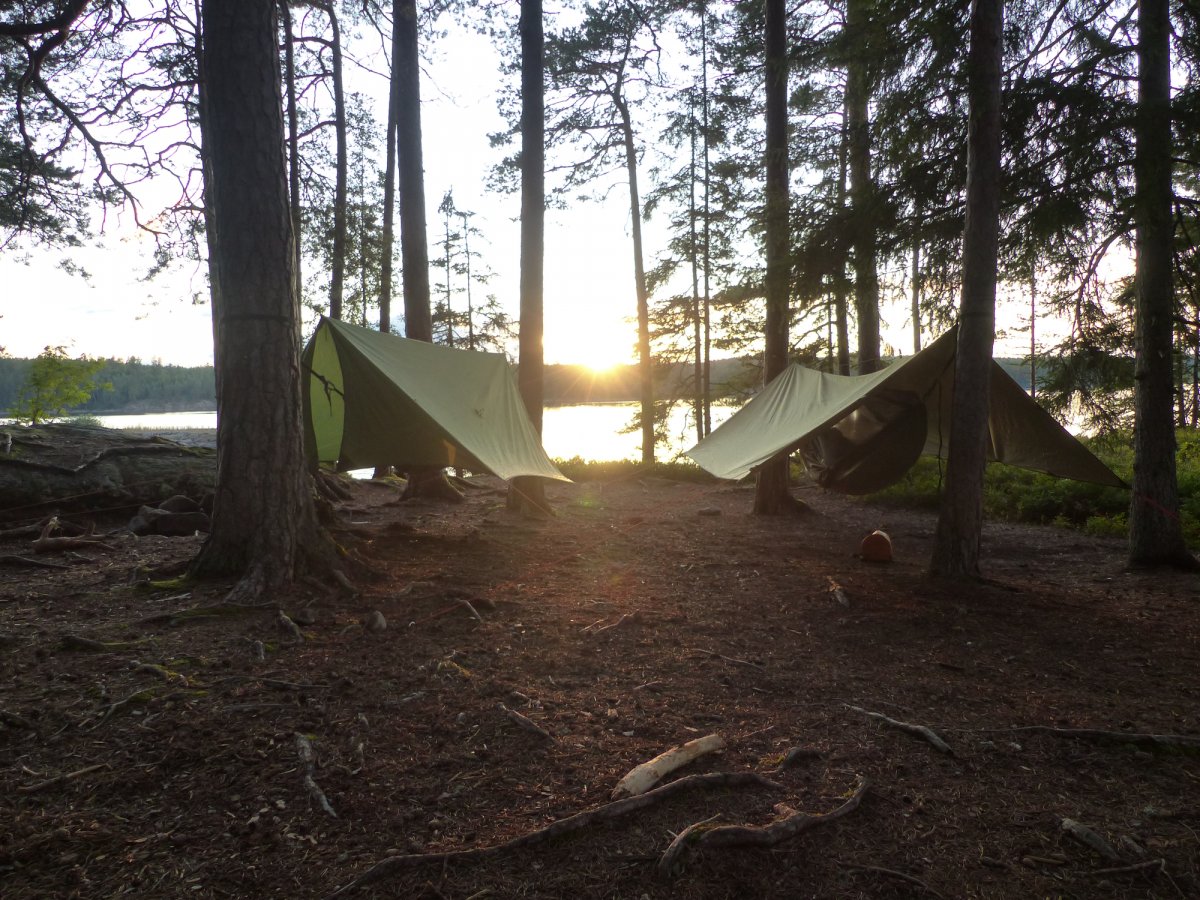 Da ihre Tour in 2 Tagen enden sollte und sie noch 10 Eier dabei hatten die sie nicht mehr brauchten bekamen wir diese mit einer Knoblauchknolle geschenkt. Am kommenden Morgen alles zusammengepackt und zum DANO 19 gepaddelt. Dort angekommen fanden wir einen Zettel vor auf dem stand das eine geführte Jugendgruppe gegen Mittag eintreffen sollte. Da kurz vor unserer Ankunft eine größere Gruppe weg gepaddelt war vermuteten wir das der Zettel vom Vortag war. Gegen Mittag traf dann aber die von Scandtrack geführte Jugendgruppe ein und man verständigte sich das DANO und die Feuerstelle gemeinsam zu nutzen. Gegen Abend stieß dann noch ein älteres Pärchen dazu.