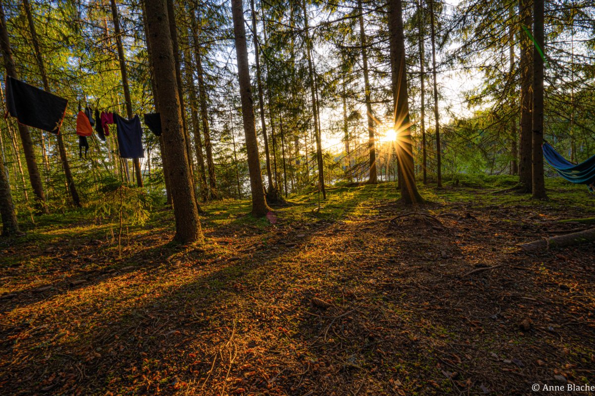 Unser ständiger Begleiter war die Wetter-App auf dem Handy. Wir wussten das wir dem schönen sonnigen Wetter ade sagen mussten und das es am nächsten Tag einen Wetterumschwung geben sollte. Wir wurden allerdings in der Nacht von einem kräftigen Gewitter heimgesucht. Als der Regenguss kam ist uns siedend heiß eingefallen das wir das Klopapier (zum Glück in einer dickeren Plastiktüte eingepackt) draußen vergessen hatten. Also war Schere, Stein, Papier an der Reihe...leider habe ich verloren und bin nur mit Unterwäsche und Stirnlampe bekleidet raus um das heilige Hab und Gut zu sichern. Der darauf folgende Kleidungswechsel hat sich aber gelohnt.