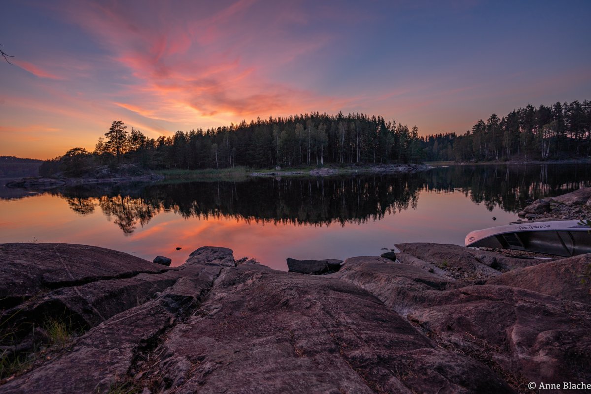 Am nächsten Tag sind wir im Fjord noch weiter Richtung Norden gepaddelt und haben den Tag beim menschenleeren DANO 35 verbracht. Hier wurden wir mit einem blutroten Sonnenuntergang belohnt.