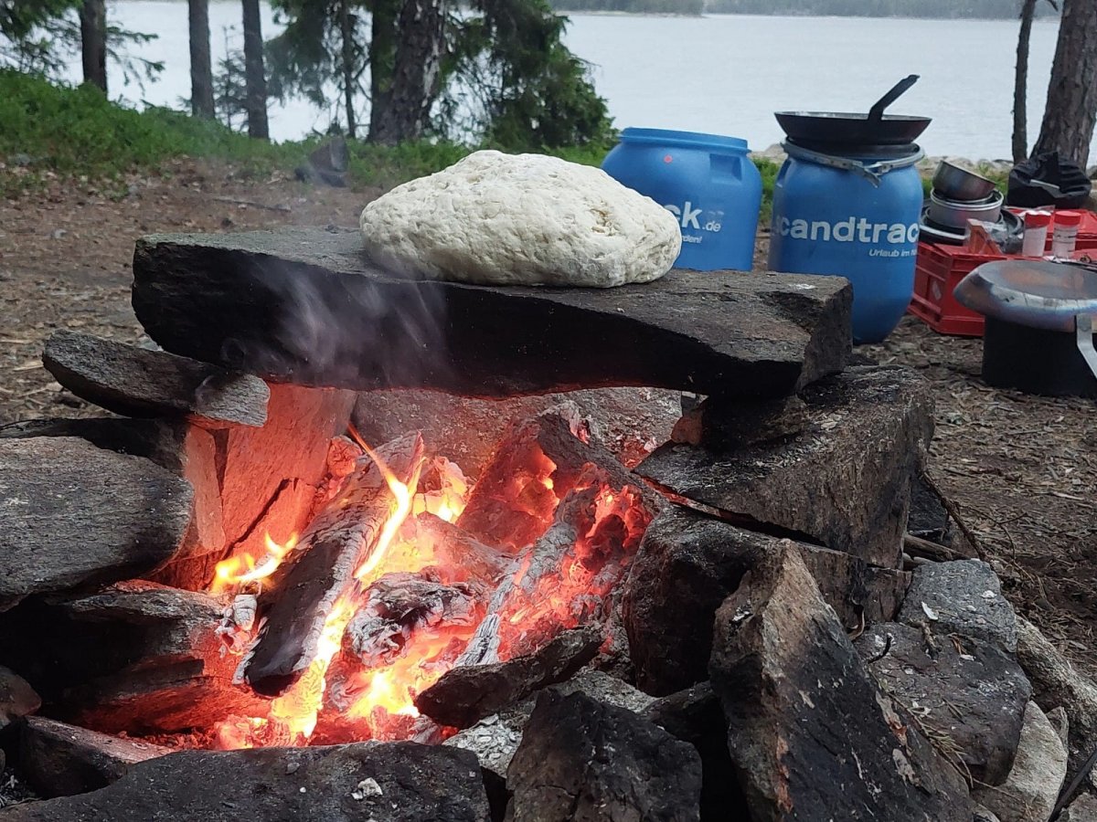 Zelte und Nothütten boten Schutz und Unterkunft für die noch hellen Nächte, auf dem Lagerfeuer wurden aus den zu Verfügung gestellten Verpflegungstonnen täglich mehrere Mahlzeiten zubereitet. Hier konnten sich die Kameraden OG d.R. Marco Braune und OG d.R. Dirk Schönwald ihrer Kreativität am Kochtopf hingeben und die übrigen Teilnehmer täglich gut versorgen. Abwechslung bot frisch geangelter Fisch und selbst gebackenes Brot.