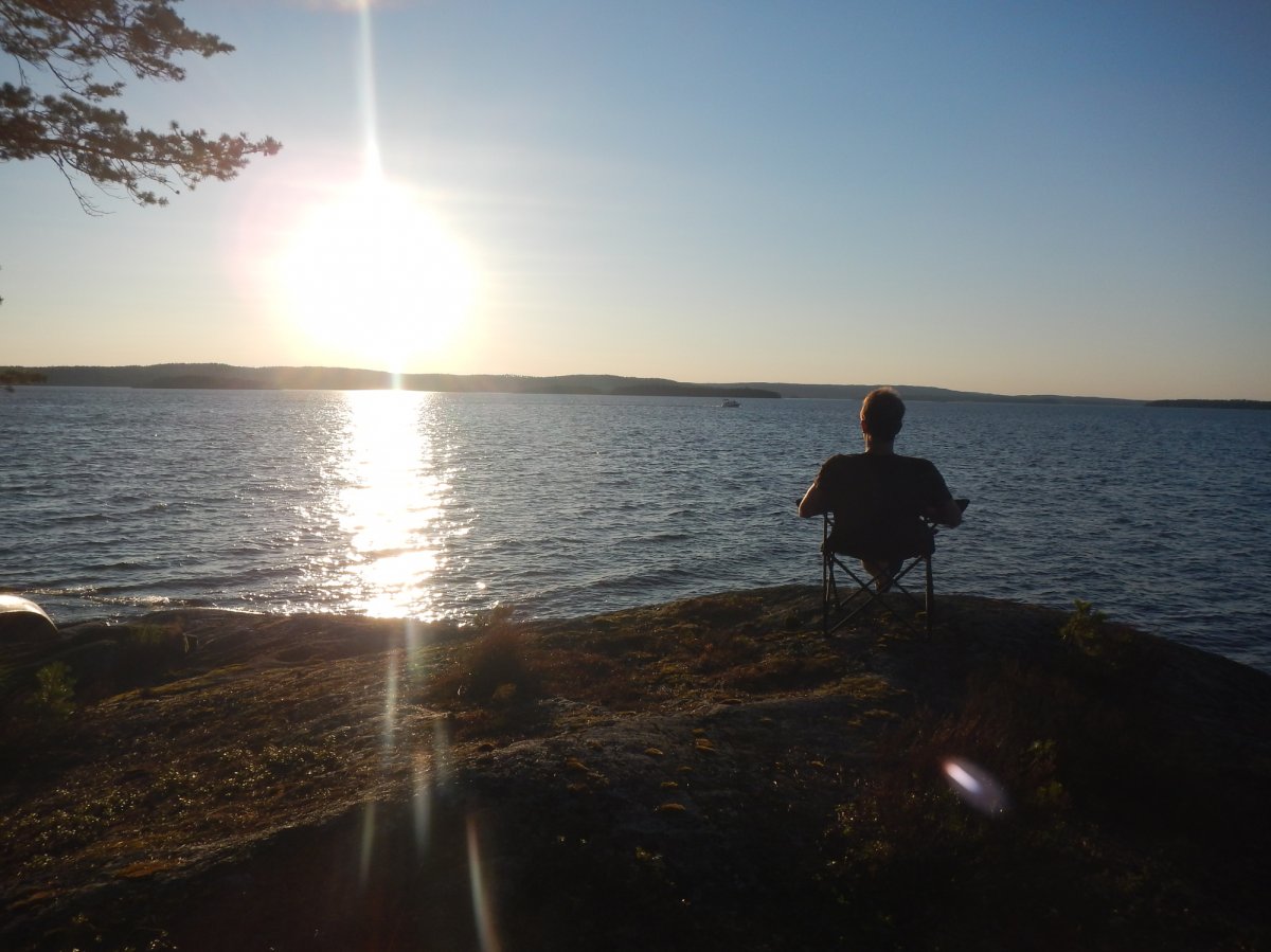 Vor Abreise haben wir noch einen schönen Freitag-Abend in Hamburg verbracht, um dann entspannt und stressfrei nach Schweden gefahren zu werden. Es war so schönes Wetter gemeldet, dass wir uns spontan dazu entschieden haben, die Regenkleidung im Camp zu lassen. Nur einmal hat es in der Zeit geregnet, das war nachts und wir lagen romantisch im Zelt. Ansonsten war das Wetter traumhaft und wir konnten täglich den Sonnenuntergang genießen und theoretisch (wir haben geschlafen) den Sonnenaufgang beobachten. Da das Wasser keinen Schatten wirft, sollte an ausreichend Sonnenmilch gedacht werden. Nach dem Urlaub waren wir braun wie 2 Wochen Ägypten.