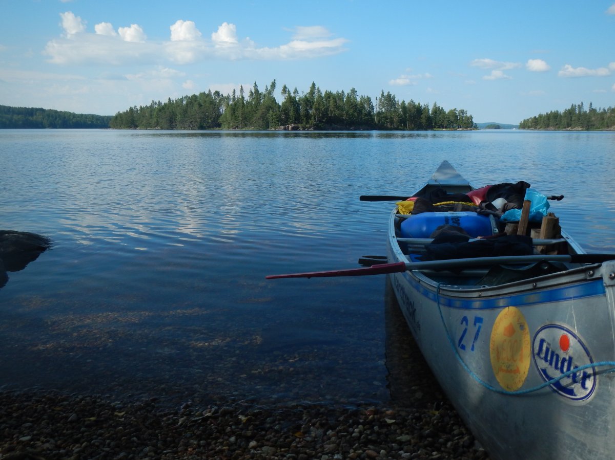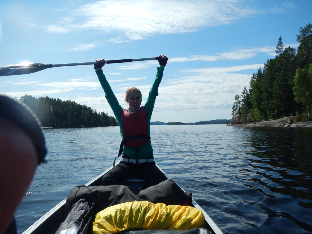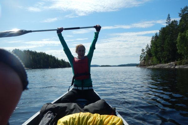 Morgens ging es nach dem Ausschlafen, Frühstücken und Packen täglich in ein neues Abenteuer. Unterwegs trifft man hier und da freundliche Kanuten. Inwiefern das Paddeln anstrengend ist, kann jede Gruppe selbst bestimmen. Manchmal haben wir uns einfach vom Wind treiben lassen. Im Schnitt schafften wir etwa 15 km am Tag. Zur Abkühlung kann man im klaren Wasser abtauchen. Wir stellten uns auf nervige Mücken ein, aufgrund der vielen Gewässer. Überraschenderweise blieben diese aus. Ein paar lästige Bremsen (wie auch immer die im Fachjargon heißen) gab es.