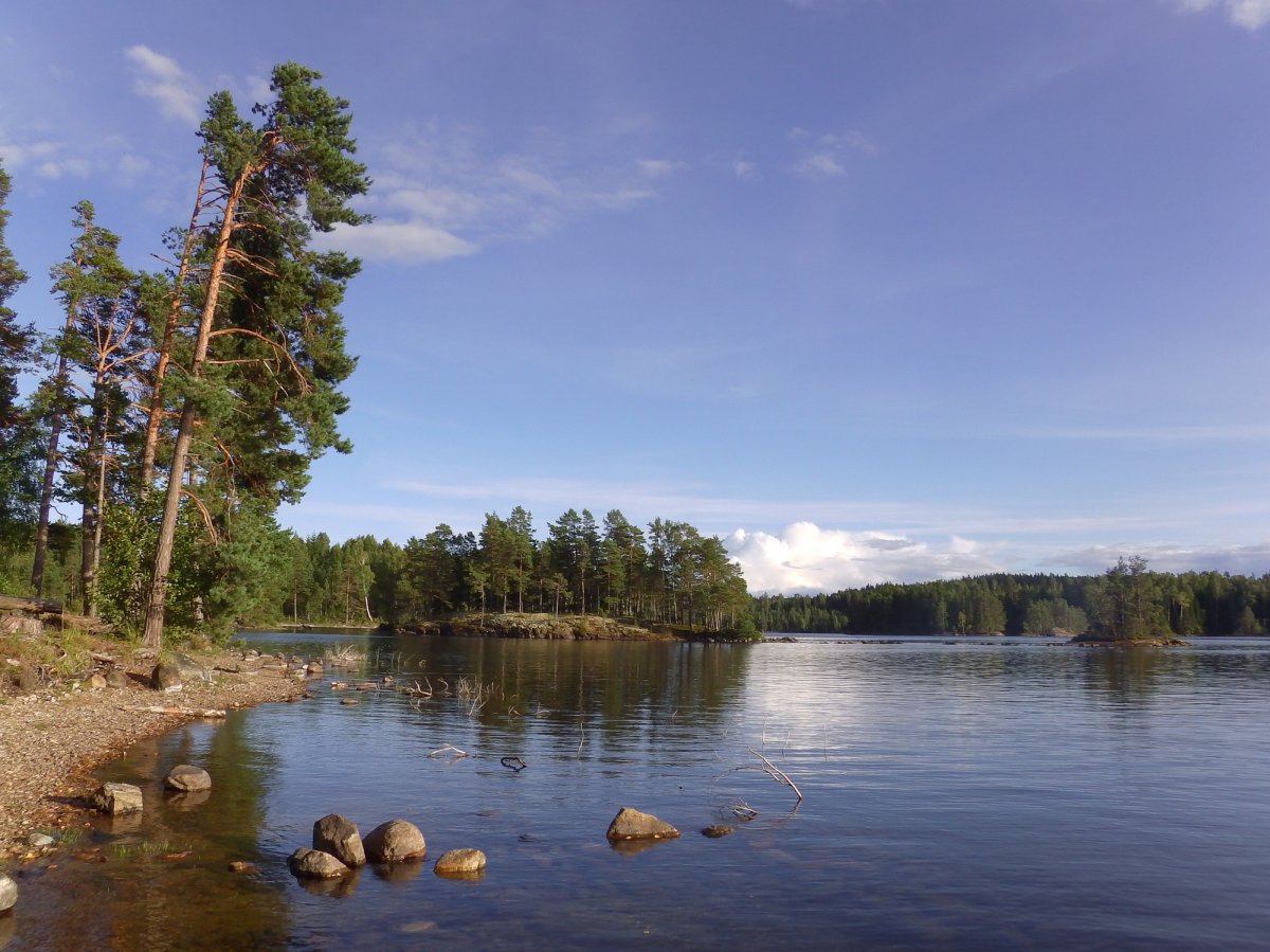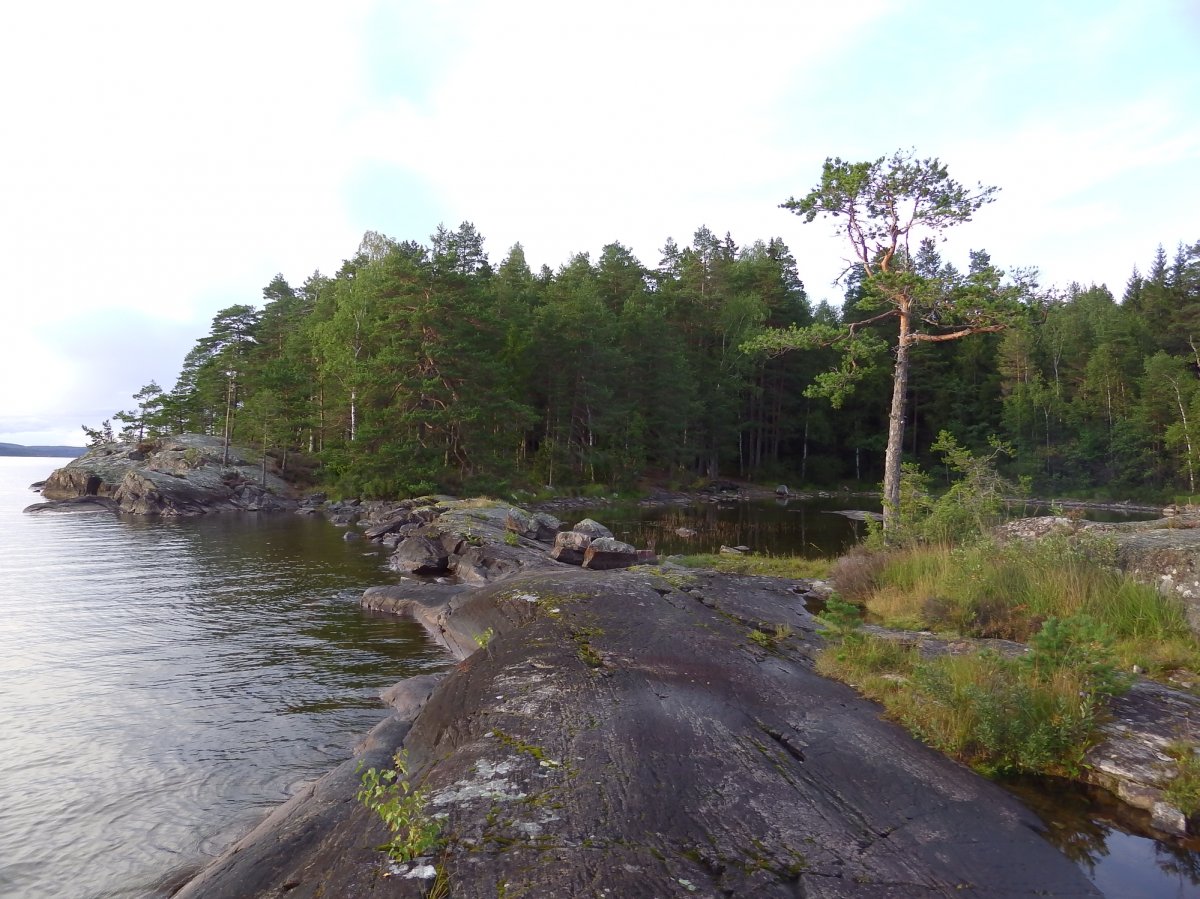 Kurz nach 10 Uhr morgens am 25. August war es vorbei mit der Ruhe in der Hütte von Rastplatz 62. Denn in der Ferne kündigte sich langsam Besuch in Form von einem Kanu und einem Kajak an. Bei den Männern handelte es sich, man wage es nicht zu glauben, um drei Österreicher, die ihrer Fantasie nach zu urteilen am liebsten nur mit Lendenschurz bekleidet und mit einem Feuerstein ausgerüstet, reisten. In der Realität waren sie den Verhältnissen entsprechend gekleidet. Das einzige wilde an den Österreichern war allerdings, dass sie keine Scandtracker sondern Selbstversorger waren. Wie sie später erfuhren, ernährten sich die Bergdeutschen nur von Pilzen, Beeren, Fischen und den mitgebrachten Sachen wie Brot und Käse. Blöderweise neigten sich Brot und Käse dem Ende zu und beim Fischfang hatten sie bisher kein Glück gehabt, sodass sie sich gegenwärtig nur mit Hilfe von Pilzen und Beeren verköstigten. Auf diese Weise bekamen sie von den Besuchern einen Unterricht in Pilz- und Beerenkunde. Stein- und Birkenpilze, so hieß es jedenfalls, durfte man auf jeden Fall essen und generell fast alles was Röhren aber keine Lamellen besaß.