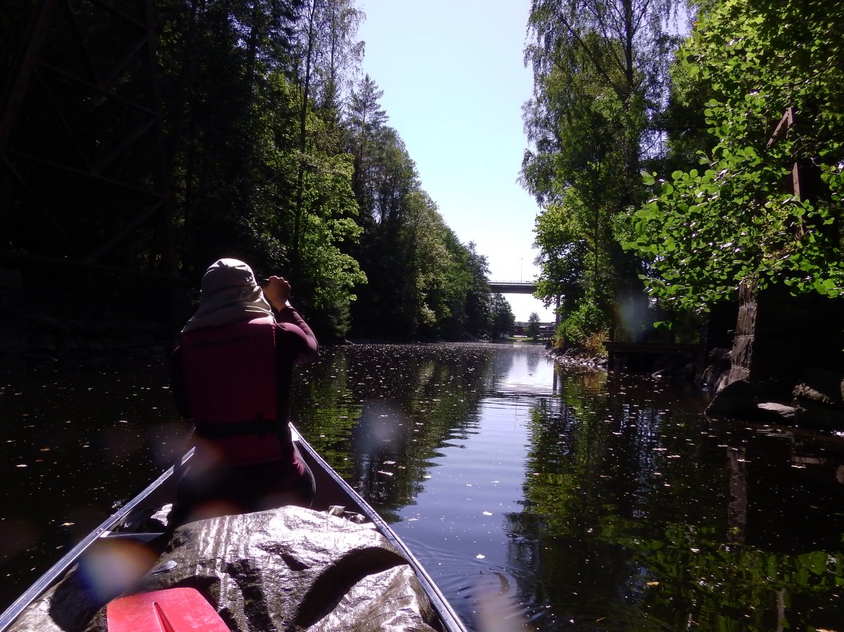 Die Tage gingen ins Land, und alles lief wie am Schnürchen. Der morgendliche Ablauf fand wie gewöhnlich statt: aufstehen, anziehen, Feuer machen, Wasser kochen, frühstücken, Lager abbauen. Die Uhr zeigte 13:20 Uhr als sie schließlich fertig gepackt im Kanu saßen. Das vorrangige Ziel war erst mal „der Süden“. Deshalb fuhren sie bis kurz vor die Stadt „Varvik“, machten auf dem Wasser eine kleine Verschnaufpause und drehten wieder um. Der Rückweg stand ihnen nun bevor. Aus diesem Grund hatten sie sich nämlich vorgenommen an diesem Abend in der Nähe der gustavsforser Schleuse zu nächtigen. Leider hatten dieselbe Idee auch viele andere Scandtracker, deswegen waren fast alle Hütten rundum die Schleuse belegt. Einige dieser Deutschen meinten auch, sie müssten ihr Nachtquartier gegenüber anderen verteidigen. Und so wurden Moritz und Xenia mit den Worten: „Muss das sein?“ aus deren Territorium vertrieben. Solche garstigen Leute stellten aber zum Glück die Ausnahme dar!