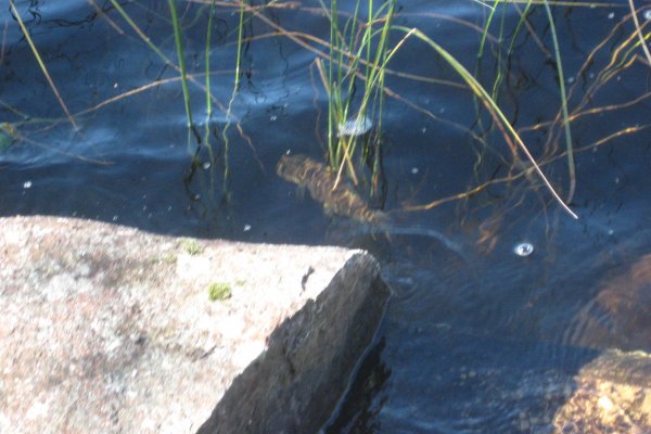 Der Wecker klingelt daher um 5:30 Uhr. Im Zweifel wollen wir am Ufer entlang zurück zum Camp fahren und schätzen, dass dies rund zwei Stunden dauern dürfte. Doch wir haben Glück und können ganz schwach das andere Ufer erahnen. Also beschließen wir nochmals ins Zelt zu gehen, dann gemütlich ein Bad zu nehmen, ebenso gemütlich Kaffee zu trinken und zu frühstücken. Schließlich fahren wir zurück zum Camp. Dort geben wir etwas wehmütig unser Boot, das uns zuverlässig eine Woche begleitet hat, ab. Die Zeit, bis uns der Bus zurück nach Lennartsfors bringt nutzen wir noch für einen kurzen Spaziergang, um dann auch dem Stora Gla mit einem letzten Sprung ins Wasser Ade zu sagen.
