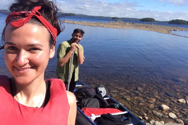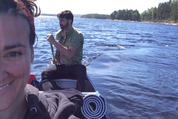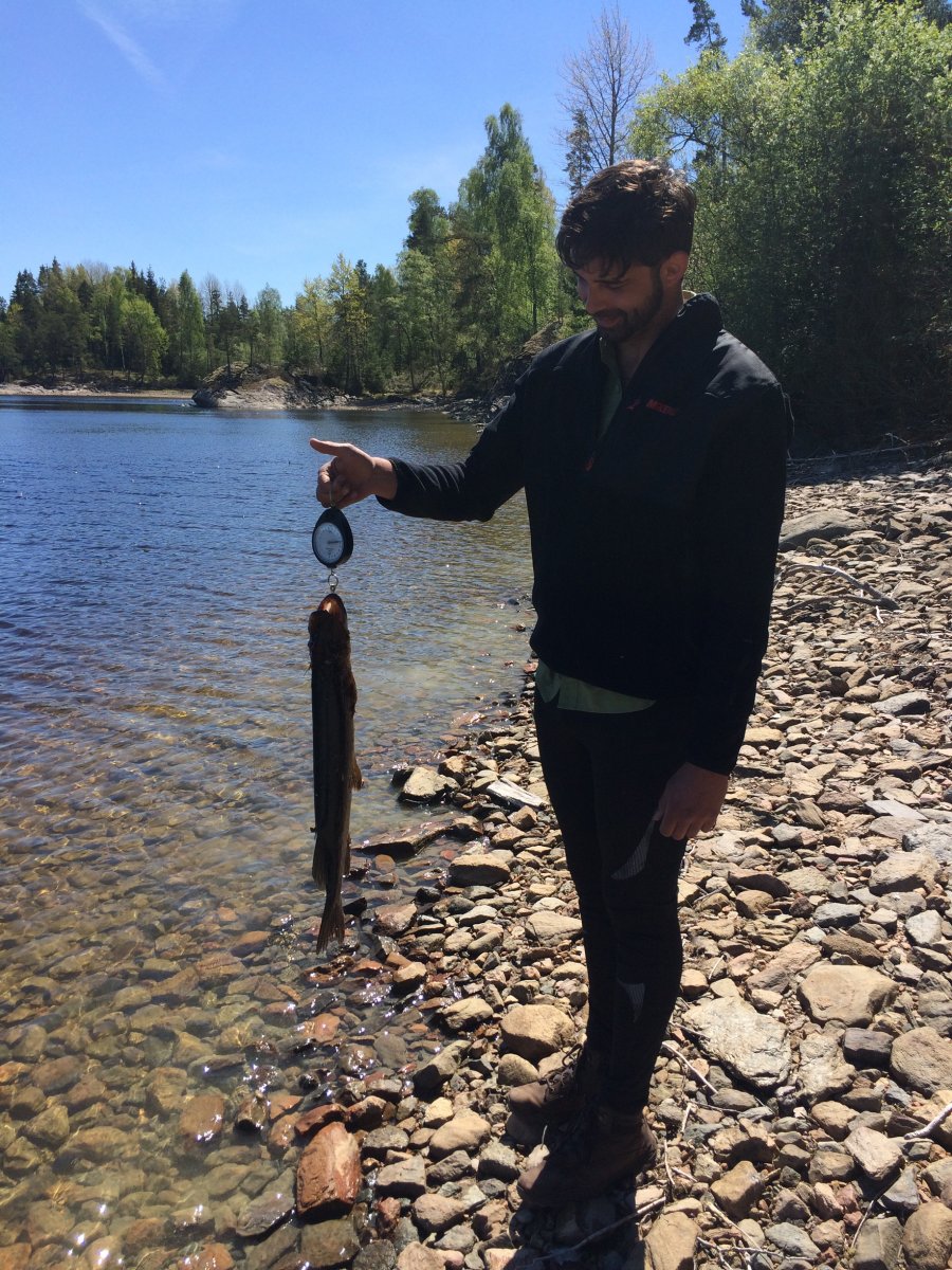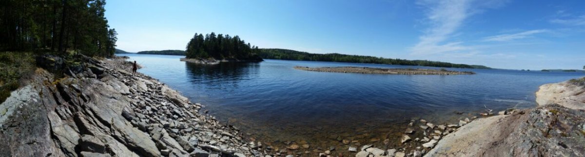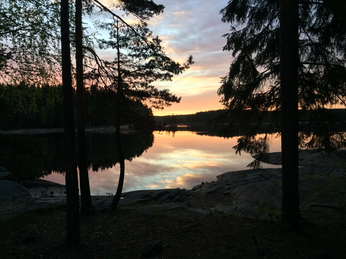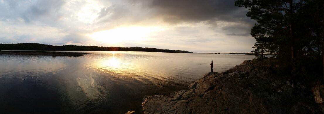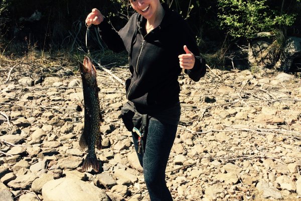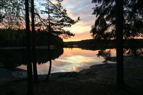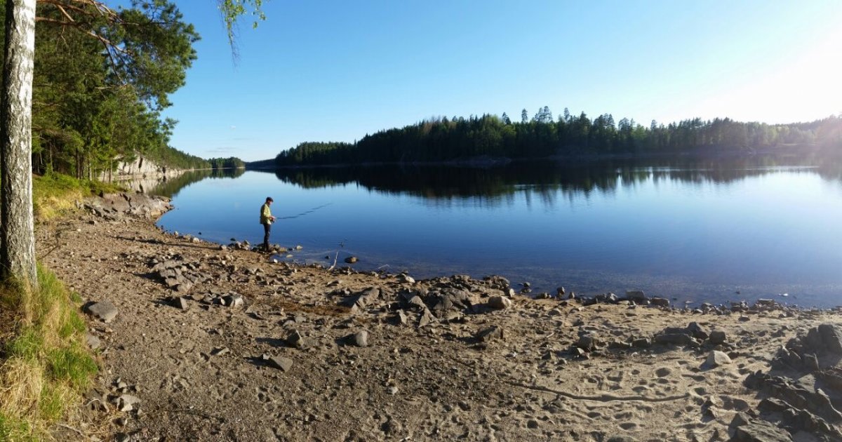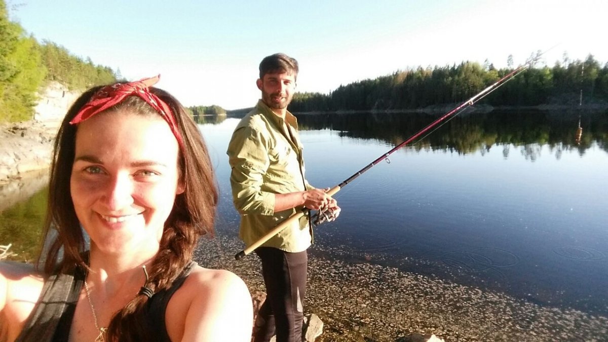 Die folgenden Tage sollten immer nach dem gleichen Schema ablaufen: Nach dem Aufstehen machten wir das Feuer an, um uns einen Kaffee oder Tee zu kochen. Da wir beide keine Armbanduhren tragen und unsere Handyakkus schonen wollten, hatten wir keine Vorstellung davon, wie spät es eigentlich war. Da wir uns recht nördlich befanden, dämmert es erst gegen 23 Uhr, die Sonne ging allerdings bereits gegen 04.30 Uhr wieder auf. Nachdem wir unsere Schlafsäcke an die Wäscheleine zum Lüften hängten, besprachen wir bei Müsli und Nutellabrot (ja, es gibt Nutella ;)), die jeweilige Tagesroute. Nach kurzer Katzenwäsche und Toilettengang packten wir unser gesamtes Hab und Gut zusammen und machten uns auf den Weg zum nächsten Ziel. Meist versuchten wir einen Kanuschlafplatz zu finden, an dem wir alleine waren und mussten dafür auch ab und zu einen Umweg in Kauf nehmen. Unsere Arme und Schultern spürten diese Extrakilometer immer als erstes und so wechselten sich die Langstrecken - und Faulenztage fair miteinander ab. Bei jeder Gelegenheit hielten wir die Angeln ins Wasser und wurden schließlich an unserem dritten Tag endlich belohnt - Flo zog nämlich direkt beim ersten Wurf einen zwei Kilo Hecht aus dem Wasser, der anschließend abends von uns (diesmal ohne Hilfe des Kochbuchs) köstlich zubereitet wurde. Damit es keinen Streit gibt, schickte mir die Unterwasserwelt bereits am nächsten Tag ebenfalls einen Hecht vorbei. Man munkelt zwar, dass er nicht ganz zwei Kilo gehabt haben soll aber was soll´s :). Petri Heil!