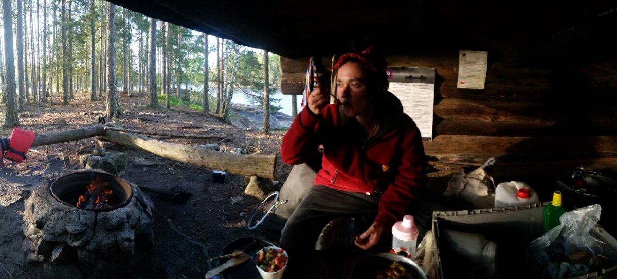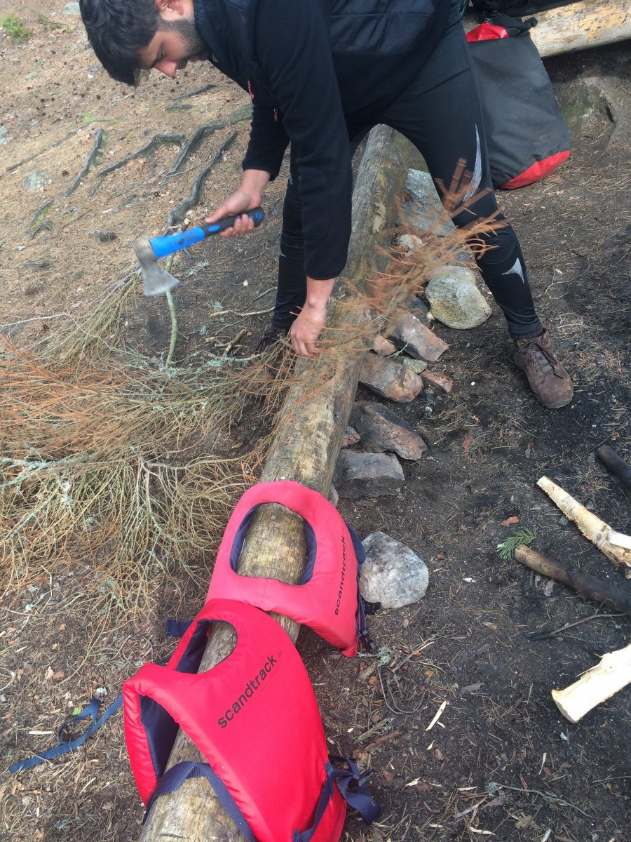 Als wir an unserem ersten Kanurastplatz, einer kleinen Insel, ankamen war ich total aufgeregt, denn ich hatte überhaupt keine Vorstellung davon, was uns erwarten würde. Weit und breit war keine Menschenseele zu sehen und als wir unser Kanu schließlich an Land zogen fühlten wir uns ein bisschen wie Robinson Crusoe, der auf der einsamen Insel gestrandet war. Campingaffin wie wir sind, machte ich mich nach kurzer Erkundung der Insel auf die Suche nach kleinerem Feuerholz und Flo began routiniert die großen Holzscheite zu zerhacken. Mensch, was ein Dreamteam!