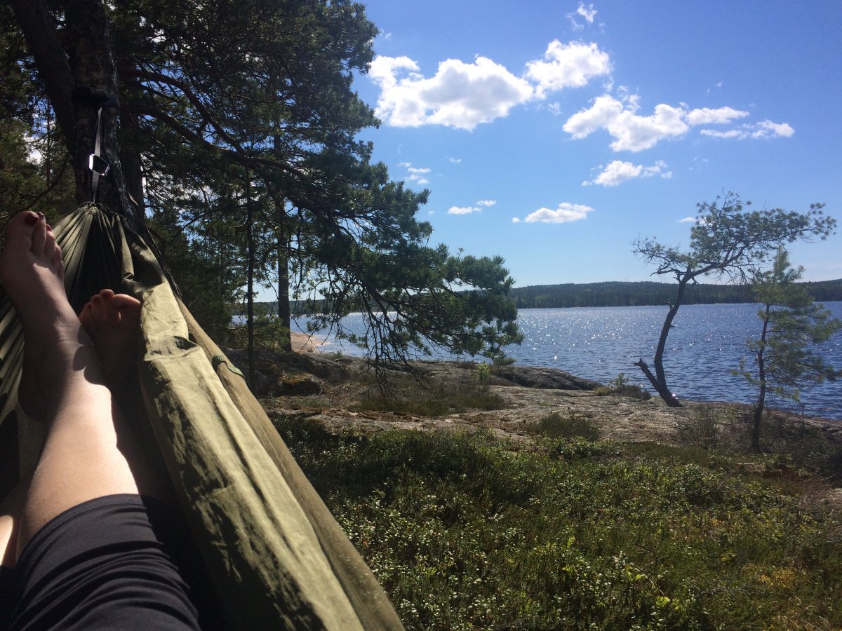 Zwei Fährfahrten, einige Fahrstunden und das ein oder andere Kaltgetränk später hieß uns Schweden mit einem sonnigen Wetter willkommen. Die schmackhaften Wiener Würstchen, die wir von einem sympathischen Scandtrack Team direkt nach unserer Ankunft im Outdoorcamp angeboten bekamen, versüßte uns den tollen Start in den Tag nur noch mehr. Nach einem kurzen Fußmarsch an den See und anschließender Einweisung erhielten wir unsere Outdoor-Ausrüstung sowie das Proviantpaket, dass uns die nächste Woche versorgen sollte. Unsere Rucksäcke hatten wir in zwei wasserdichte Packsäcke gepackt und ich bekam das erste Mal ein klein wenig Panik. Wozu ein wasserdichter Packsack? Ist es etwa möglich, dass wir mit unserem Kanu kentern? Und wenn dem so wäre, würden unsere Sachen dann wirklich trocken bleiben?