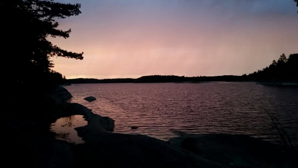 Nun zu meinen Talenten. Was ich gut kann ist vorausschauen. Nach ca. der Hälfte unserer Reise machten wir uns auf unsere bisher längste Strecke, die uns knapp 20 km über den Foxen See Richtung Norden bringen sollte. Der Tag war sehr windig und das Wasser erstmals unruhig und so steuerten wir das Kanu behutsam, damit die Wellen uns nicht umschubsten. Wir hatten glücklicherweise die gesamte Route über Rückenwind und waren doch recht kaputt, als wir schließlich unsere Nachtlager errichteten. Beim Abendessen wurde uns plötzlich bewusst, dass wir die selbe Route am darauffolgenden Tag wieder zurückfahren müssen, denn wir wollten vermeiden, das Kanu über den Landweg zu transportieren. 20 km paddeln bei Gegenwind und wildem Wasser - völlig unmöglich! Nachdem ich mich jammernd und motzend ins Bett verabschiedete, kam mir Nachts die zündende Idee: Direkt nach Sonnenaufgang gegen 04:00 Uhr weckte ich Flo, der nicht wusste wie ihm geschah und informierte ihn über meinen grandiosen Plan uns das stille, morgendliche Wasser zum Vorteil zu machen, bevor später die Sonne aufging und der Wind das Ruder übernahm. Schnell packten wir unsere Sachen zusammen und erreichten nach entspannten vier Stunden und einem malerischen Sonnenaufgang unser Wunschcamp im Süden. Schon erstaunlich, was man so alles vor der ersten Tasse Kaffee leisten kann!
