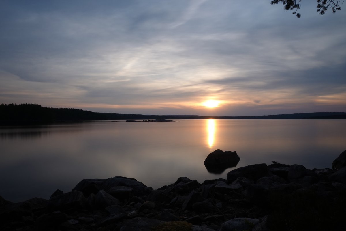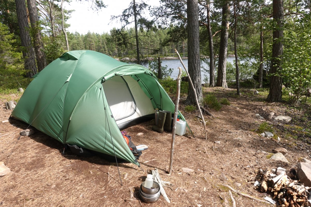 Am ersten Tag haben wir uns nach 4 km paddeln auf dem Stora Gla recht schnell nach einem Zeltplatz umgeschaut, gekocht, uns einen Überblick über das Essenspaket verschafft, und haben müde wie wir waren sehr früh die erste Nacht im Zelt begonnen.