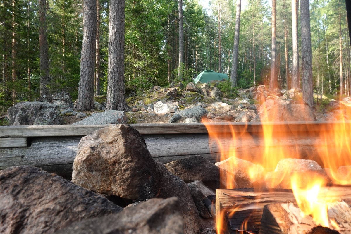 Nach einem frühen Frühstück sind wir durch unsere kleine Zwangspause voll motiviert in den Tag gestartet und waren bereit für eine größere Tour. Nachdem die Umrundung der Insel Harnäset nicht möglich (Sackgasse) und Rastplatz Nr. 14 belegt war, haben wir uns gegen Mittag bei Rastplatz Nr. 12 ausgebreitet. Endlich konnten wir ein Lagerfeuer machen!