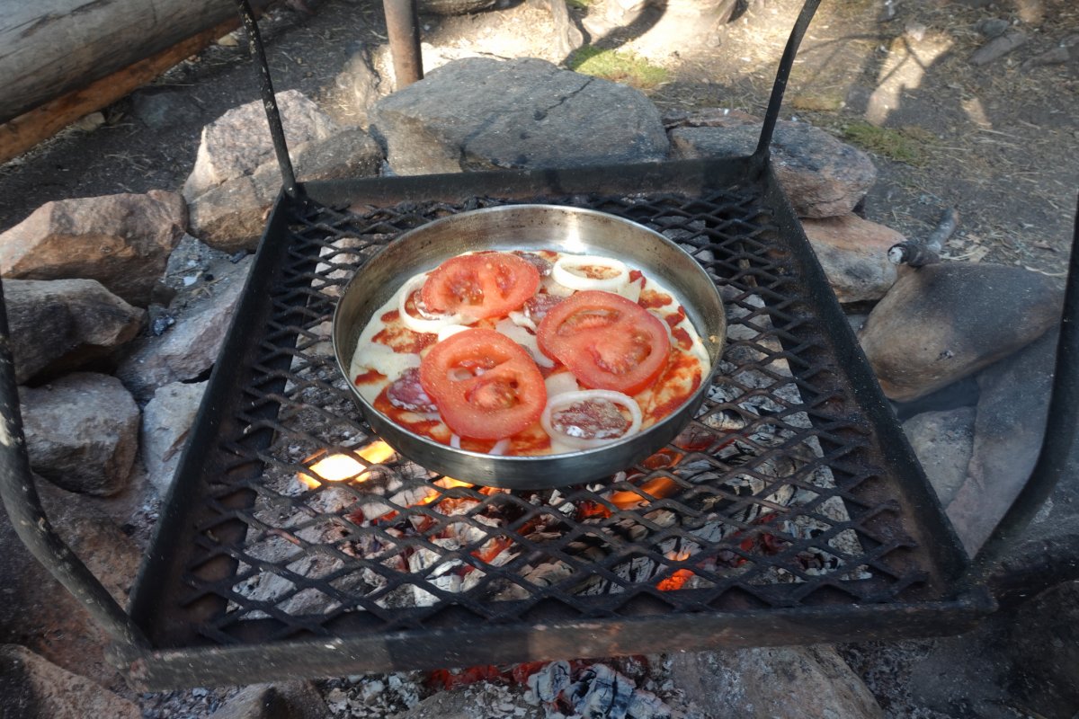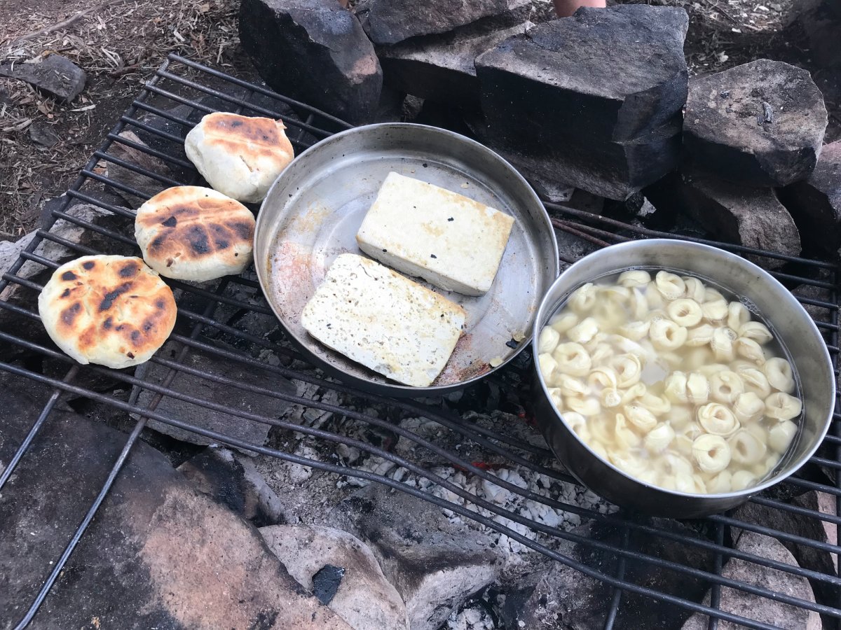 Gegen 5 Uhr morgens begann das Gewitter. Unser Zelt blieb glücklicherweise trocken und wir sind bis 10 Uhr morgens im Zelt verharrt, bevor wir uns direkt vorm Zelteingang eine große Portion Müsli gemacht haben. Am Mittag hatten wir zum Glück unser vorbereitetes Brot und mussten nur noch schnell eine Suppe dazu machen.