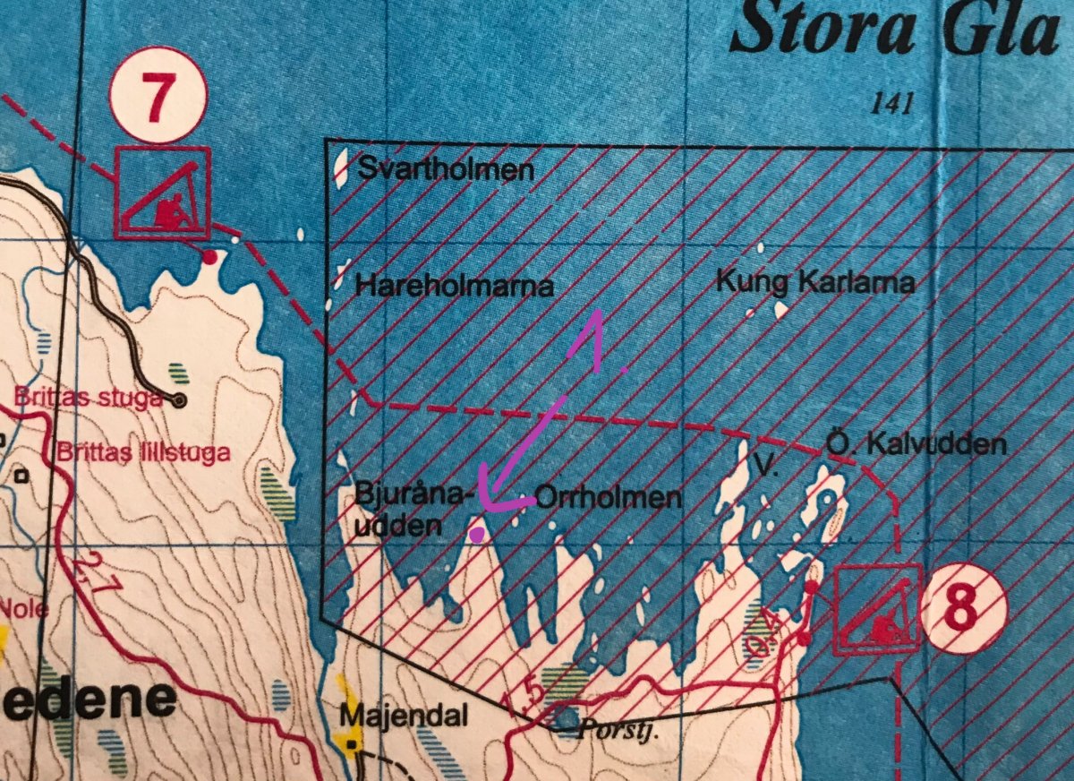 Wetter: sonnig, ruhiges Wasser,Rastplatz: zwischen Bjuranaudden/Orrholmen (siehe Fotos/Karte),zurückgelegte Strecke: 4 km