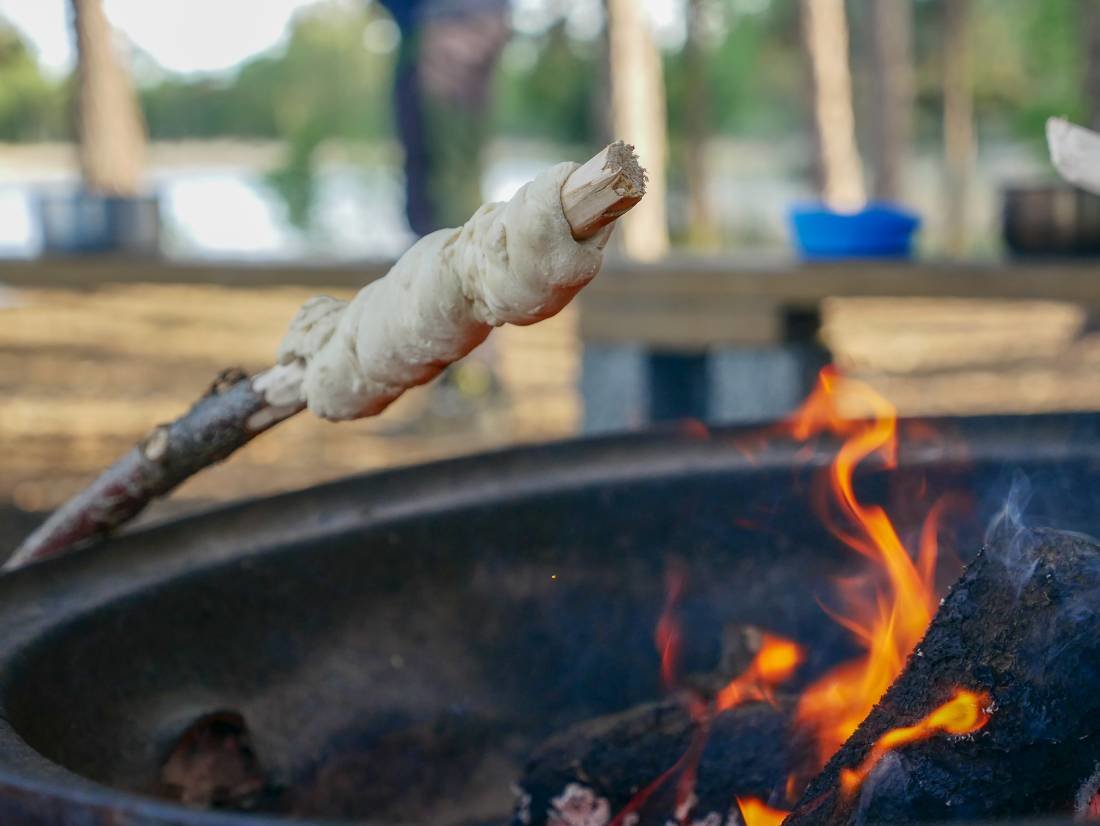 An dem ein oder anderen Tag tobte aber auch der Wind und die Wellen machten es uns nicht einfach voran zu kommen – dank guter Navigation und Ausdauert kamen wir jedoch immer sicher an unserem Ziel an. Nach der Ankunft an einem neuen Platz hatten wir immer den gleichen Ablauf: Kanus sichern, Schlafplatz einrichten, Insel erkunden. Jeden Tag war es wieder total spannend einen neuen Ort zu erleben. Gegen Abend besprachen wir uns immer, was es zum Essen gab: Von Stockbrot über Nudelpfannen bis hin zu verschiedenen Eintöpfen war alles dabei. Im passenden Kochbuch konnte man sich Inspirationen holen, aber auch nach Lust und Laune die Zutaten verwenden. Am ersten Abend hatten wir sogar das Glück einen Fisch an Land zu ziehen – diesen selber zuzubereiten und auch zu verspeisen.