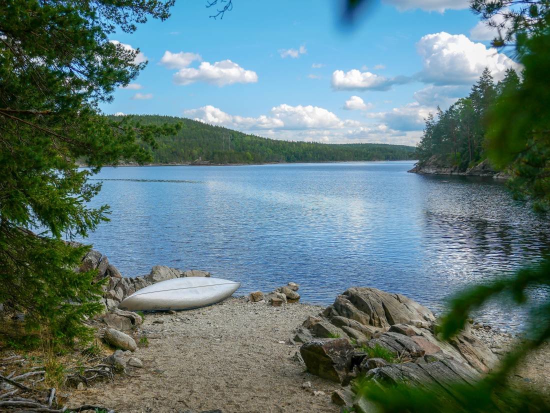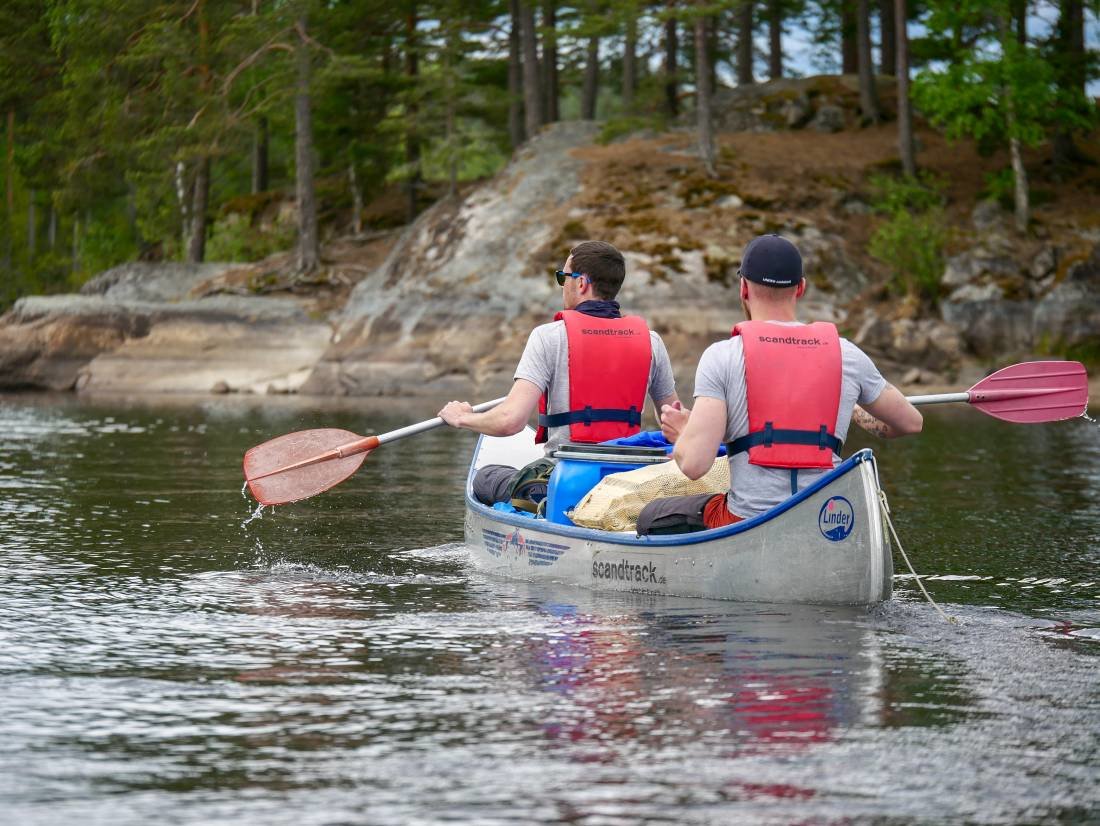 Nachdem wir das Kanu und unsere Ausrüstung abgeholt hatten konnten es losgehen. Am Tag fuhren wir zwischen zwei und sechs Stunden auf dem See umher, trafen andere Kanus und konnten die wunderschöne Landschaft in Schweden genießen. Nach Lust und Laune suchten wir uns ein neues Ziel in unserem Gebiet und legten so im Durchschnitt zwischen fünf und acht Kilometer auf dem Wasser zurück.