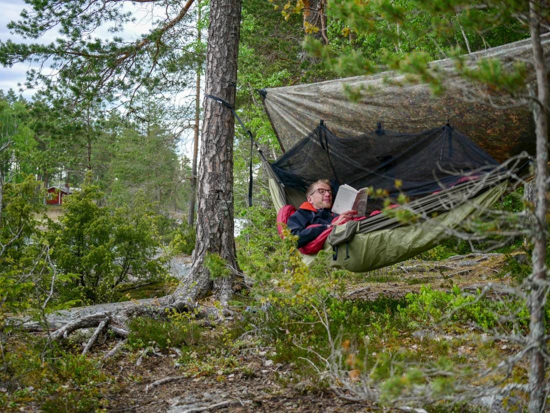 Tagsüber beschäftigt man sich sonst mit Holz holen und für den Abend vorbereiten, Lesen, Musik hören, Angeln und entspannen. Durch die Stille und die Natur konnte ich wunderbar abschalten und den Alltag zuhause ein wenig vergessen. Auch die Stunden am Lagerfeuer waren gemütlich. Zu unserer Reisezeit ging die Sonne nie ganz unter, das bedeutet wir konnten auch um 22 Uhr noch den Sonnenuntergang bewundern.
