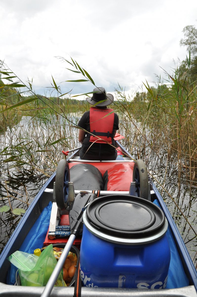 Die Umtragewege führen oft an großen Müllcontainern vorbei. Die Schweden sind sehr vorbildlich und trennen ihren Müll. Wir wollten uns auch von unserem Müll trennen, aber wir hatten im Boot unseren Müll nicht sortiert und irgendwie war die Variante „Restmüll“ nicht vorgesehen. Am Müllcontainer in Lennartsforts stand an jedem Einwurf auch in Deutsch dran, für welche Sorte Müll es vorgesehen war. Man konnte sich also nicht mal damit rausreden, man hätte es nicht besser gewusst. Wir waren etwas ratlos und da es keinen Einwurf gab, den wir mit unserem Gewissen vereinbaren konnten, beschlossen wir, unseren Müll mitzunehmen und am letzten Tag im Basiscamp zu entsorgen. Nach unserer Ortsbesichtigung änderte sich unsere Meinung schlagartig. Während wir unterwegs waren, haben Krähen unsere Mülltüte ausführlich inspiziert, in ihre Einzelteile zerlegt und den Inhalt großzügig im Boot verteilt. Mülltrennung hin oder her, wir sammelten alles so gut es ging zusammen und versenkten es im ersten Loch des Containers.