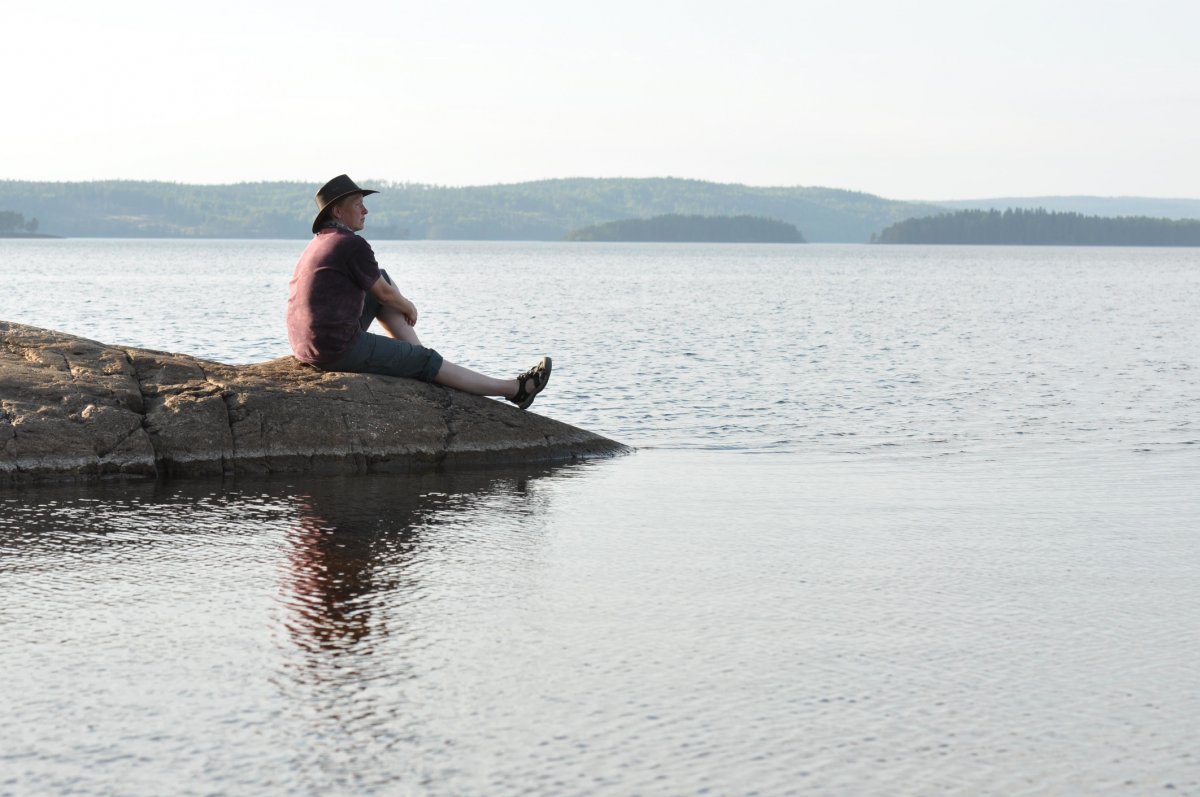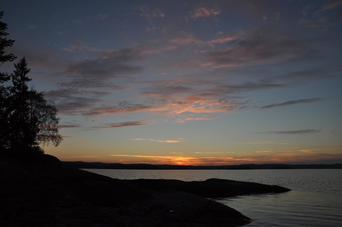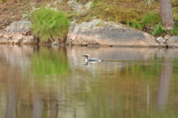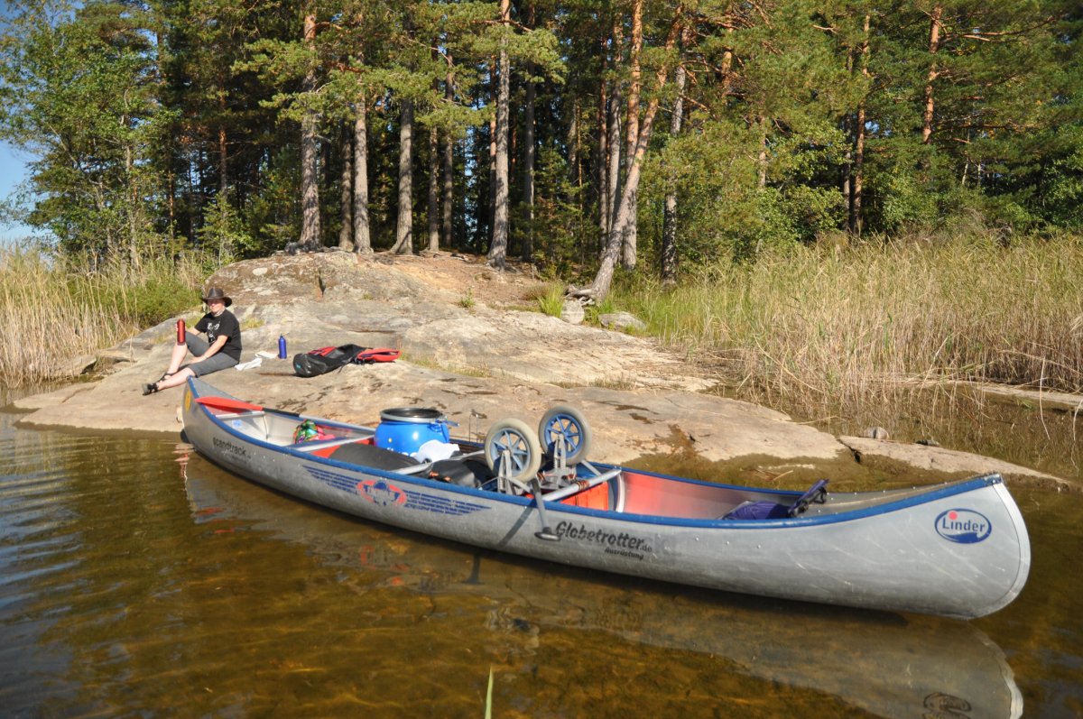 Das Wetter meinte es gut mit uns. Es war warm, die Mücken hatten sich schon verzogen, so dass wir lange draußen sitzen konnten. Eine Woche lang genossen wir die Leichtigkeit des Seins. Ohne konkretes Ziel, ohne Zeitdruck lebten wir in den Tag hinein, gingen baden, paddelten durch die Seenlandschaft und erfreuten uns an der grandiosen Natur, den vielen kleinen Inselchen mit ihren beschaulichen Buchten und klaren Nächten mit einem wundervollen zunehmenden Mond. Gleich am ersten Abend konnten wir einen Fischadler beobachten. Auf der weiteren Tour sahen wir noch zahlreiche Prachttaucher.