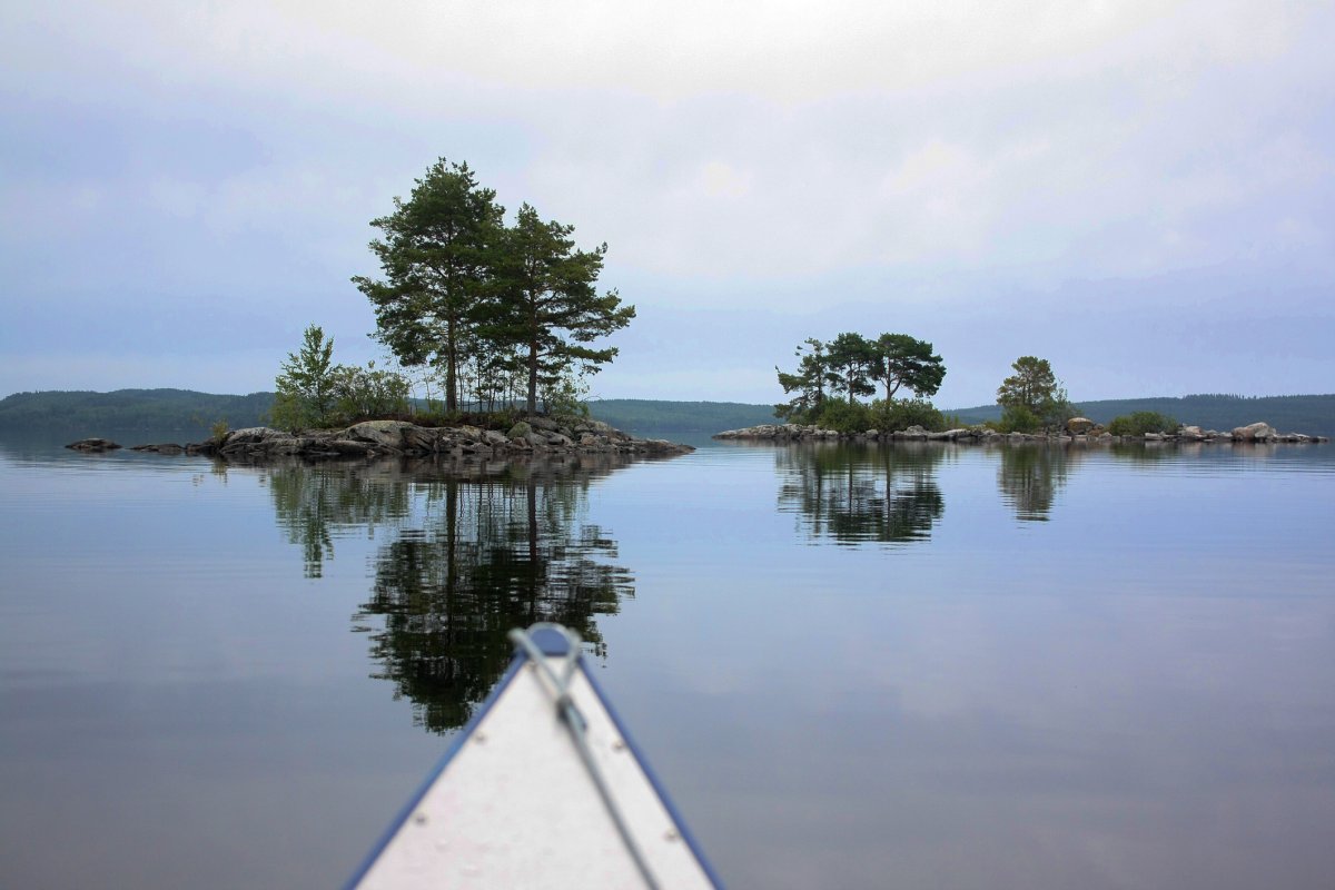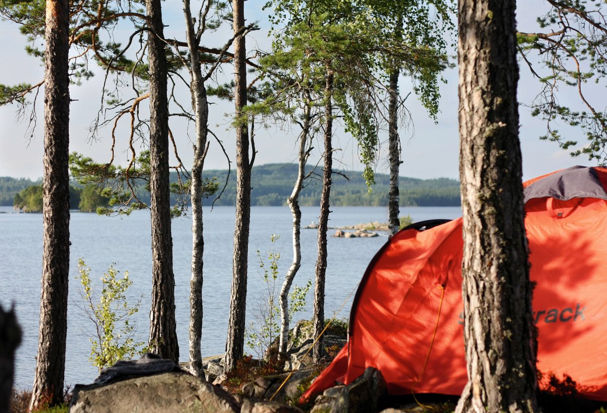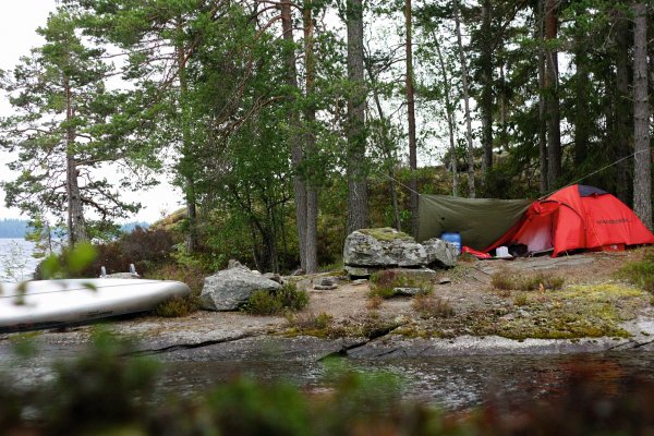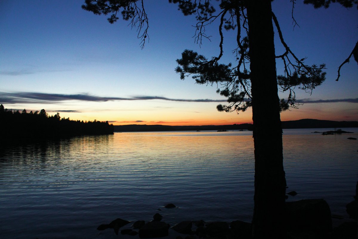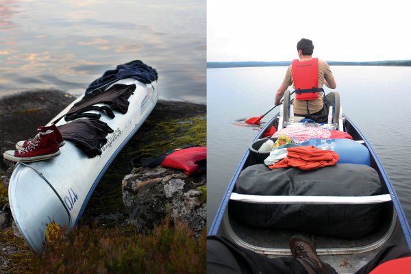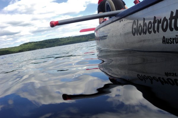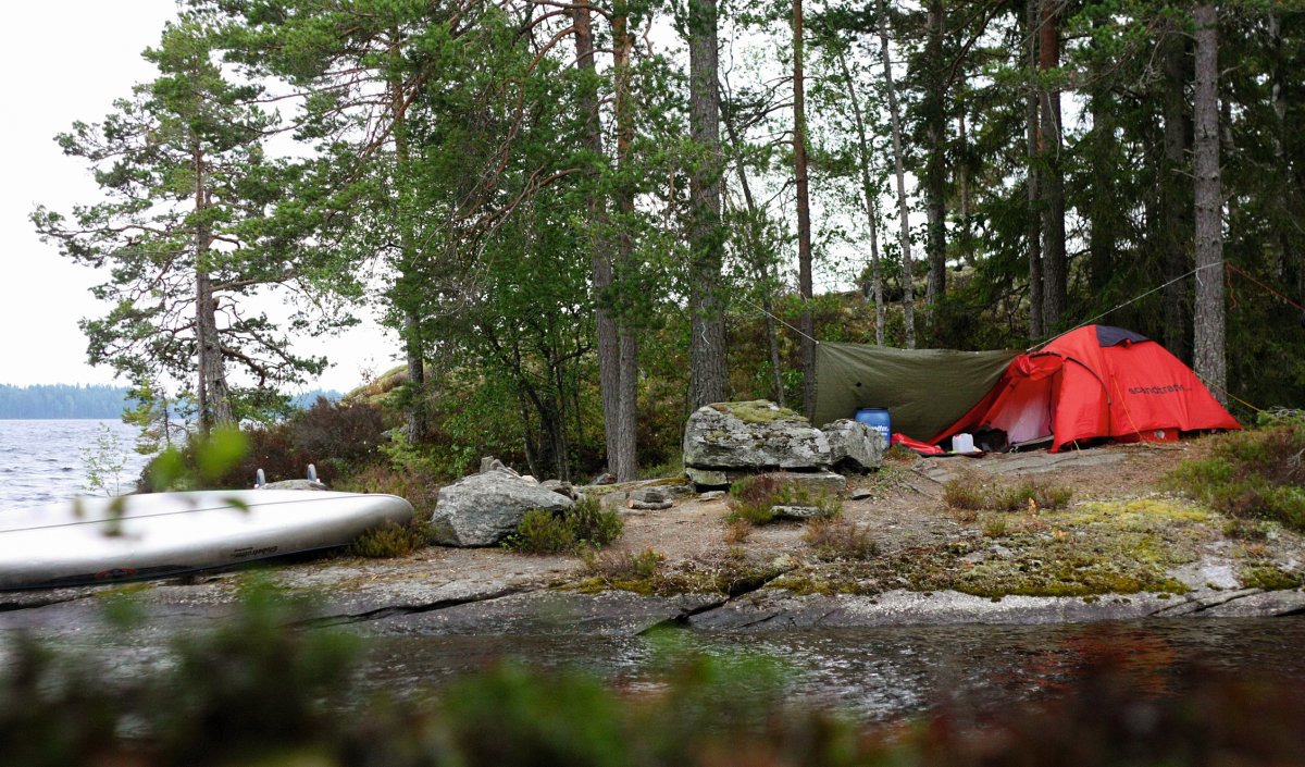 Nach 12 Jahren Freundschaft war es nun endlich mal Zeit für eine anständige Reise. Wir, dass sind Nils (23) und Fabian (22) und typische Stadtkinder, aufgewachsen im Ruhrgebiet. Mit Geologie und Geographie studieren wir zwar nicht unbedingt naturfremde Fächer, hatten jedoch mit Kanutouren ungefähr genau so viel Erfahrung wie mit dem Bau eines Space Shuttles. Was liegt da näher als sich einfach mal, auf eigene Faust, in die Wildnis Schwedens zu begeben und zu schauen ob man denn auch als Stadtkind ohne ein Handy oder angenehme Bahnverbindungen klar kommt. Und da es uns möglich war diesen Text hier zu verfassen, nimmt sich das Ende schon von selbst vorweg. Ja, wir haben überlebt. Aber zunächst stand natürlich erst einmal die Anreise auf dem Plan, mit grob geschätzten 18 Stunden Fahrt von Dortmund aus hatten wir direkt etwas worauf wir uns freuen konnten. Okay, nicht wirklich, jedoch wurde die Hinfahrt durch nette und humorvolle Busfahrer, welche schon beim Einpacken des Gepäcks zu Scherzen aufgelegt waren und durch die Möglichkeit an Bord kleinere, gekühlte, alkoholische Getränke käuflich zu erwerben, doch erheblich versüßt. Und auch eine nächtliche Fahrt mit einer Fähre hat im Halbschlaf einen beruhigenden und zu gleich erfrischenden Charakter und lässt sich nur empfehlen. Kurze Zeit später kamen wir auch schon im Basiscamp an und wurden wieder einmal freundlichst empfangen und mit einem kleinen Snack und Getränken begrüßt. Nach weiterer Organisation hatten wir schließlich unsere Ausrüstung, unser Kanu und den Willen nun auch mal Wasser von nahem zu sehen. Wenig später fanden wir uns auch schon mitten auf dem ersten See wieder, rückblickend eindeutig nicht unsere beste Idee direkt relativ weit vom Ufer entfernt unsere Paddelfähigkeiten auf die Probe zu stellen. Kaum eine halbe Stunde unterwegs steuerten wir direkt in ein ausgewachsenen Gewitter hinein und als die ersten Blitze an Land aufleuchteten und wir innerhalb weniger Augenblicke bis auf die Knochen nass waren, denn kurz vorher war schließlich bestes Wetter und die Regenjacken waren im Rucksack geblieben, wurde uns bewusst, dass wir nun doch schleunigst zum Ufer gelangen sollten. In der Ferne konnten wir ein rotes Scandtrack Zelt entdecken und steuerten geradewegs drauf zu, schließlich wollten wir nur wieder Land unter den Füßen haben. Gestrandet bei einer netten Familie konnten wir unsere Sachen wechseln und natürlich ließ das Gewitter innerhalb weniger Minuten nach und wir konnten zu unserer ersten Insel reisen, auf welcher wir unser Lager aufschlugen.